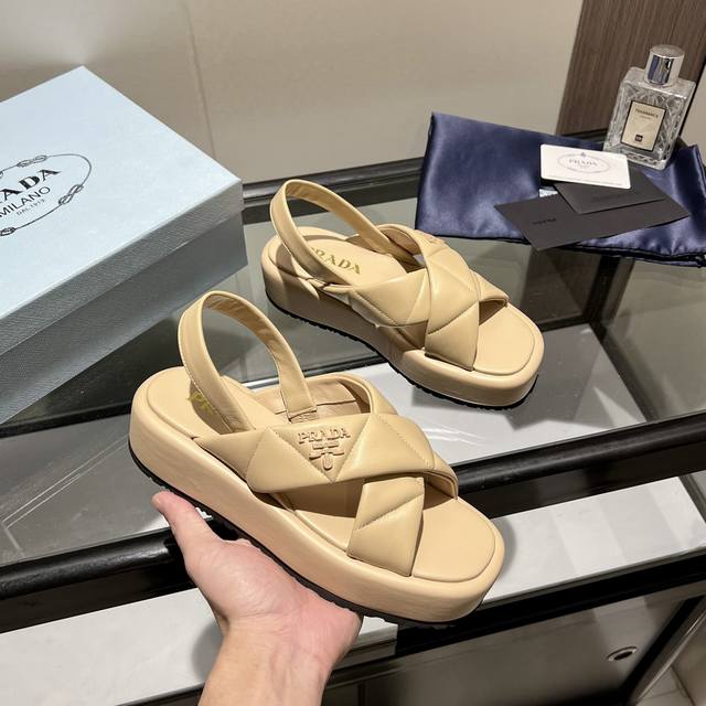 出厂价 普拉达prada 2024新款 厚底靴系列 简约大气百搭系列 牛皮/开边珠牛皮面 羊皮内里 原版大底 35-39 40,41订做不退换