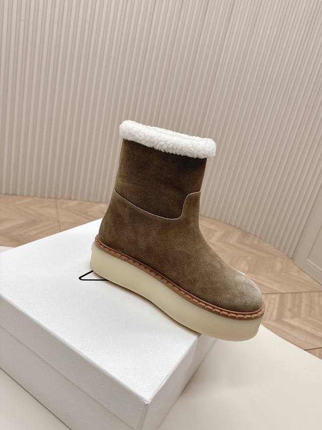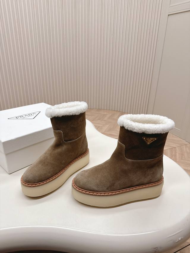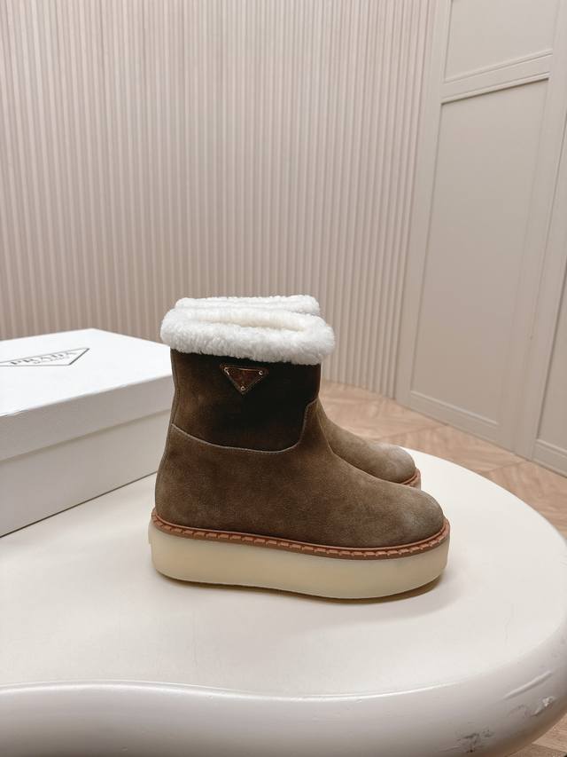 市面最高版本 Prada 普拉达24秋冬新款△三角标羊毛鞋,厚底靴 雪地靴 双色擦色牛绒真羊羔毛 真皮沿条 双色tpu大底 材质细节可对比原版,市面普通版本区分!Size:35-41 40.41定制不退换