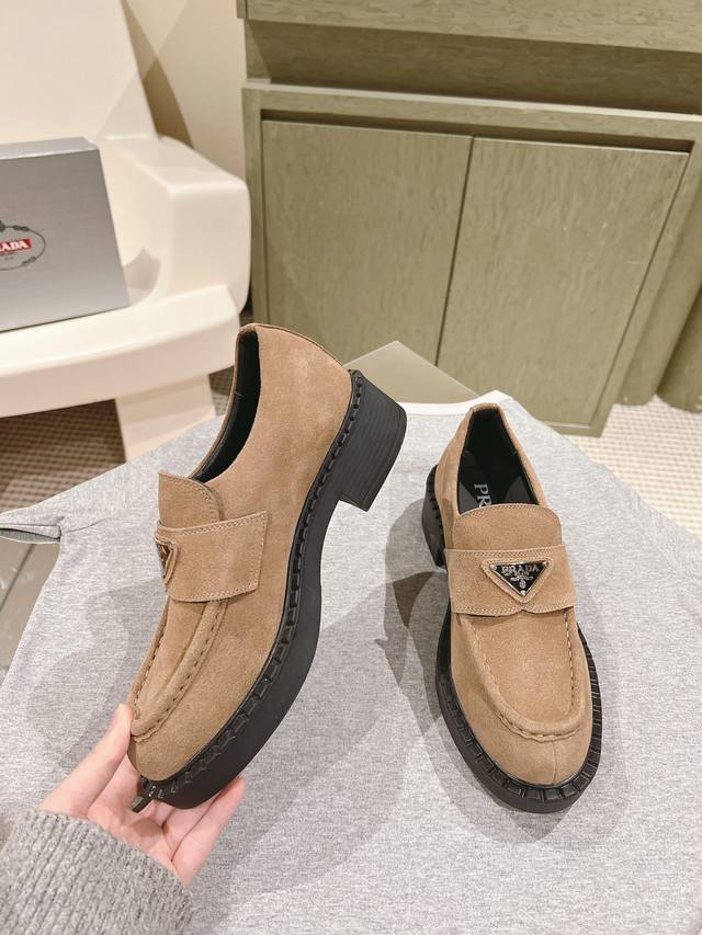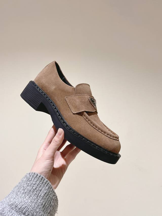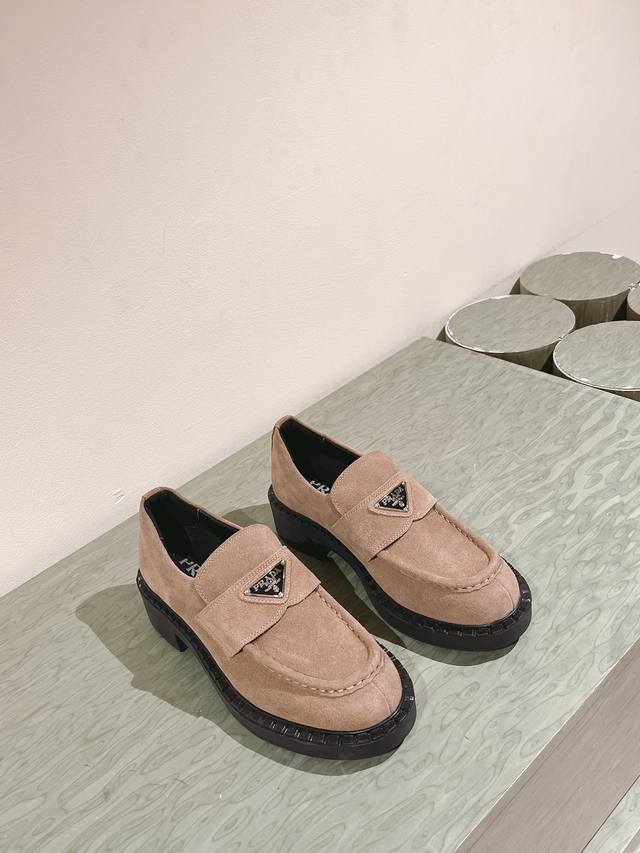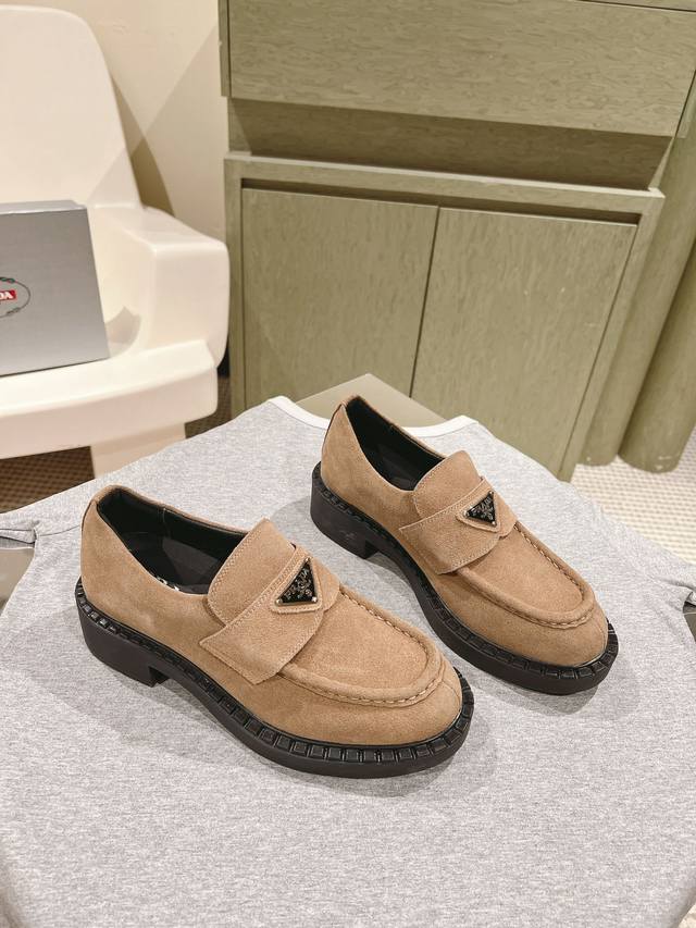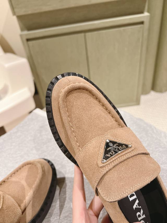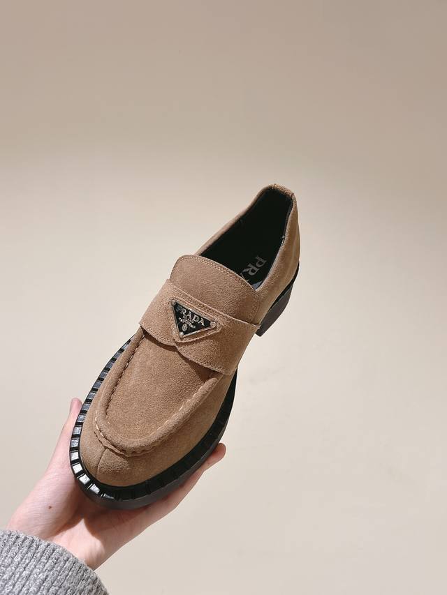 一腳蹬厚底乐福鞋 普拉达新款,这款牛筋底上脚非常舒适,今年非常爆,穿上 增高 休闲两不误,清爽的表现足以表达对鞋子的个个细节的把控,
