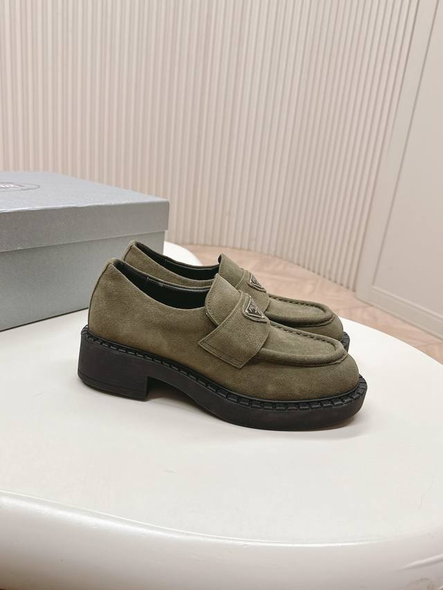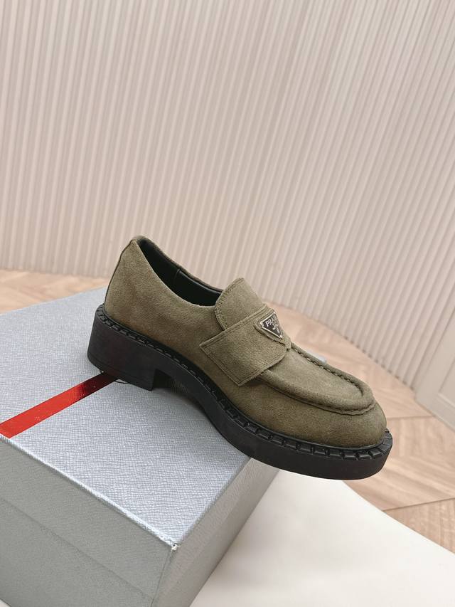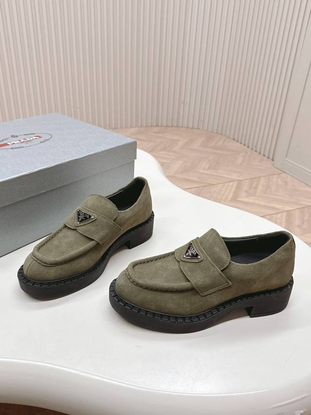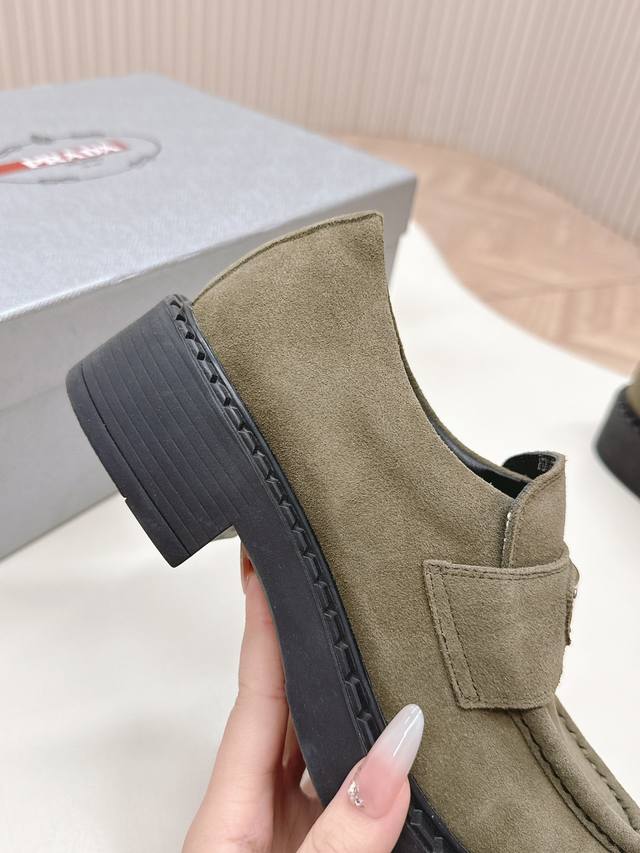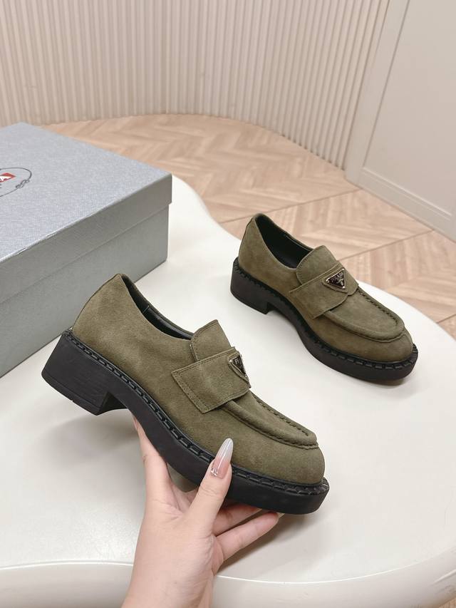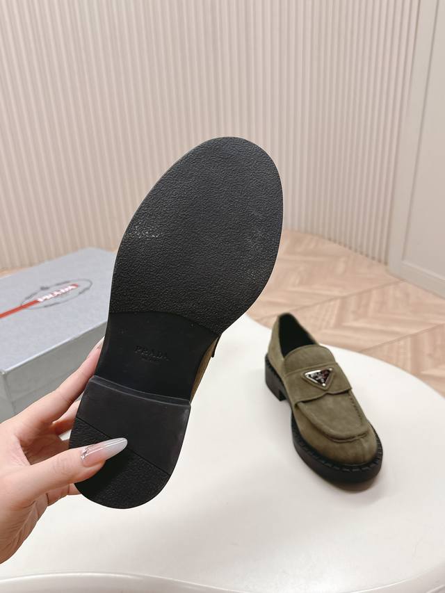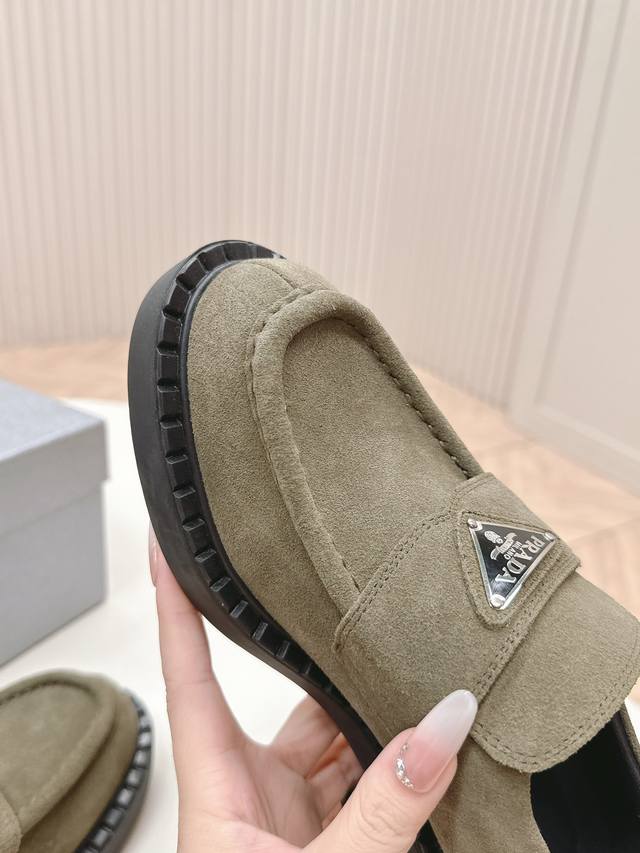 情侣款 Prada 普拉达 秋冬季新款绒面一脚蹬乐福鞋