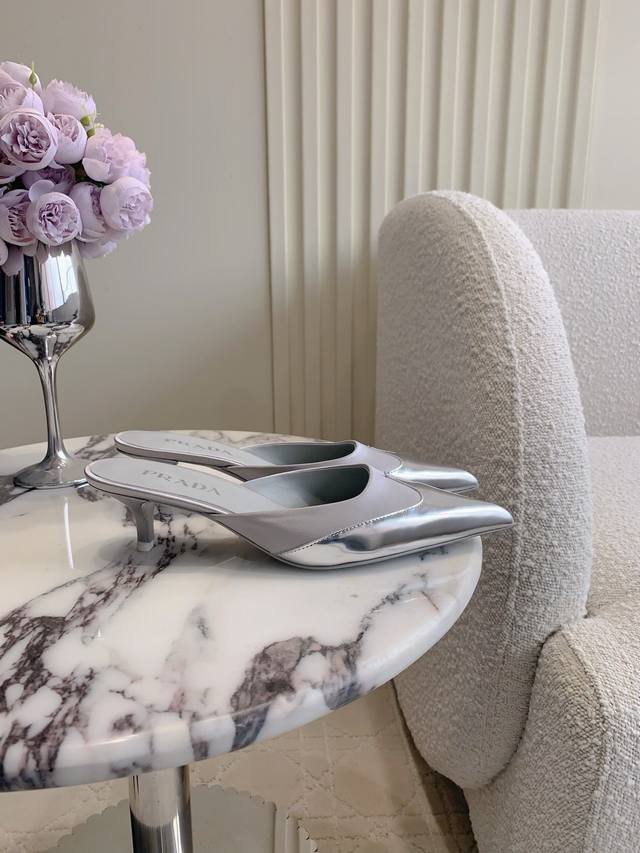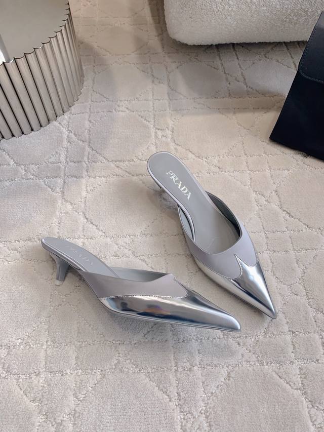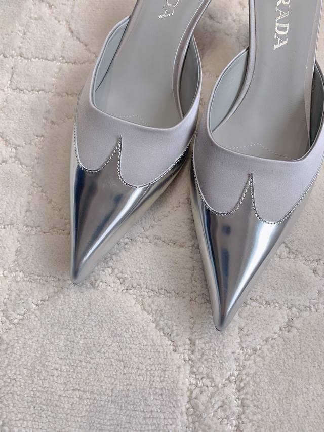 Prad*新款尖头拼色高跟鞋 金属色拼接 未来科技感满满 时尚界久违的极简之美 时髦又精致 日常穿出高级感