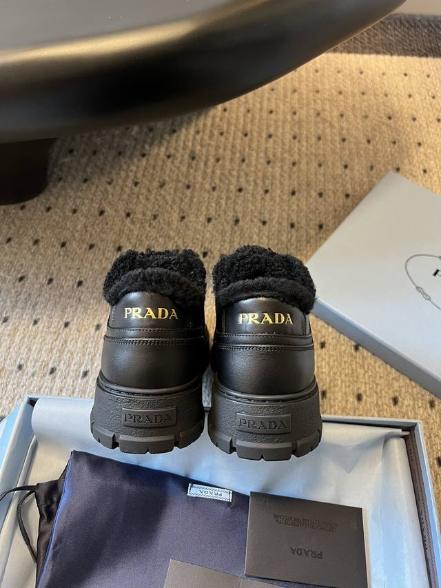 新品 prad* 23 普拉达抓绒款厚底金标运动鞋
