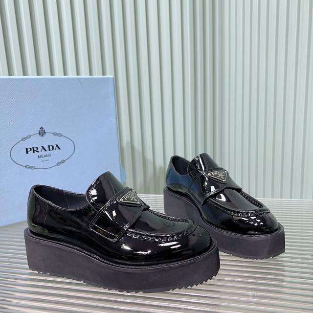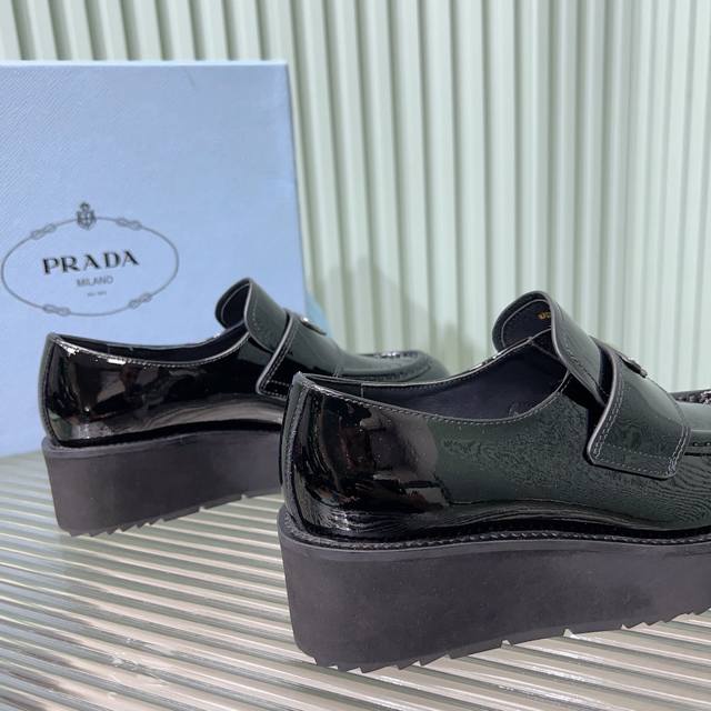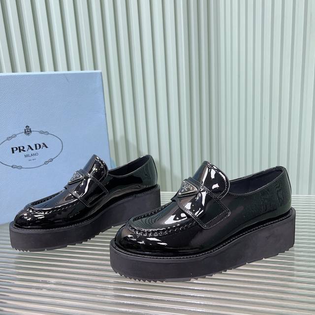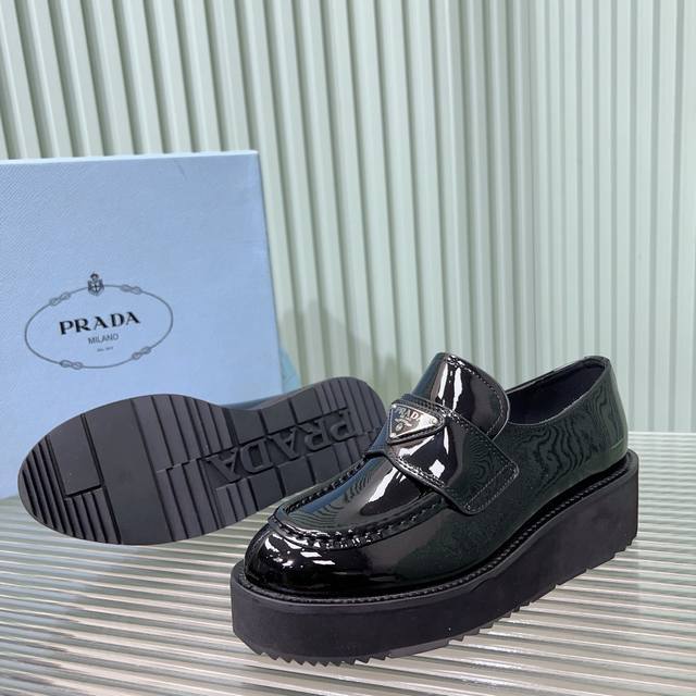 Prada普拉达 24Ss 秋冬 厚底三角标乐福鞋 时尚厚底休闲乐福鞋 独到味道,人人都爱也轻松驾驭...