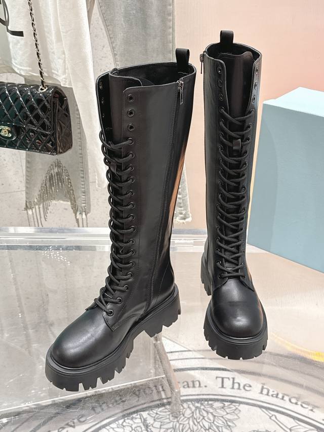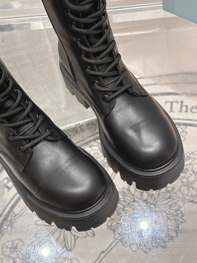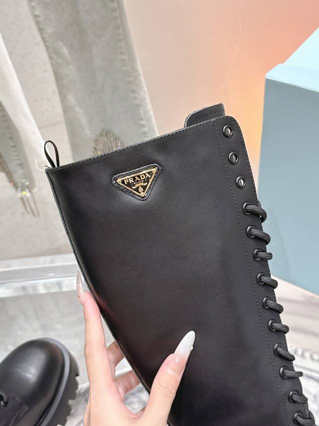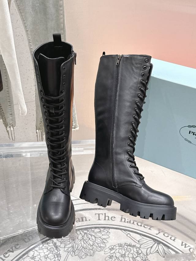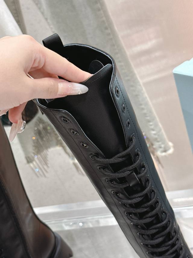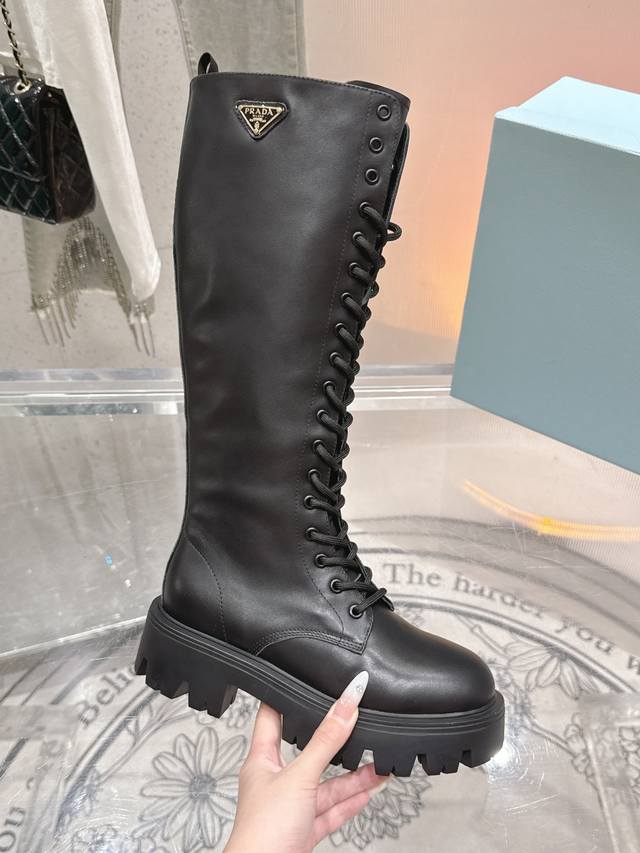 普拉达秋冬新品 三角标切尔西厚底长靴. 面料采用原版定制牛皮 内里垫脚均为羊皮 意大利进口Tpu大底 Size:35-40 [40 41定制]