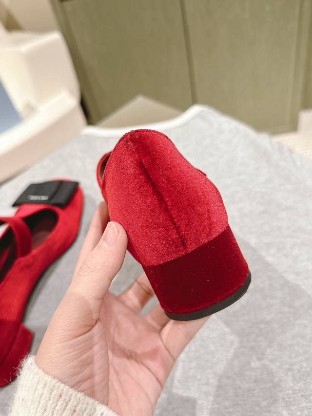 鞋面进口丝绒织带蝴蝶结 内里垫脚羊皮 意大利真皮大底 跟高4Cm