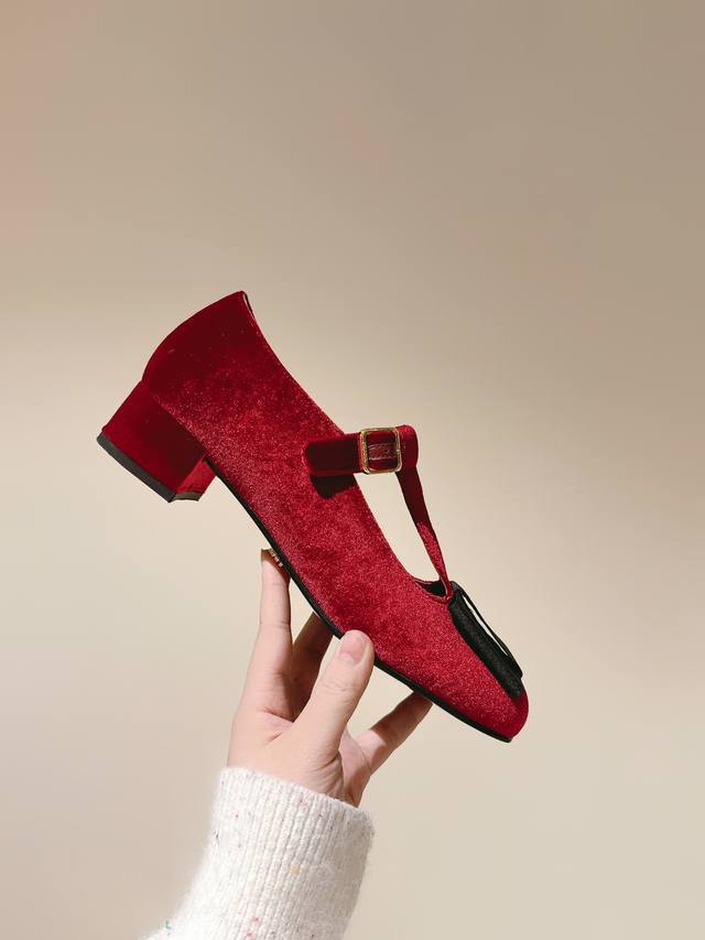 / 普拉达25 S早春新品 顶级版本,Prad*新款三角标丝绒蝴蝶结玛丽珍单鞋 复古又时髦 粗跟设计超好穿 简约大气 原版购入1:1打造 细节感拉满 新年新气象!上