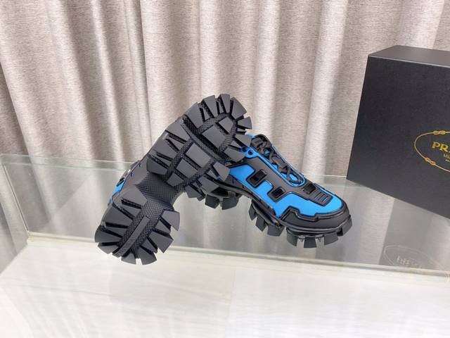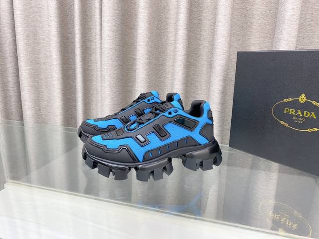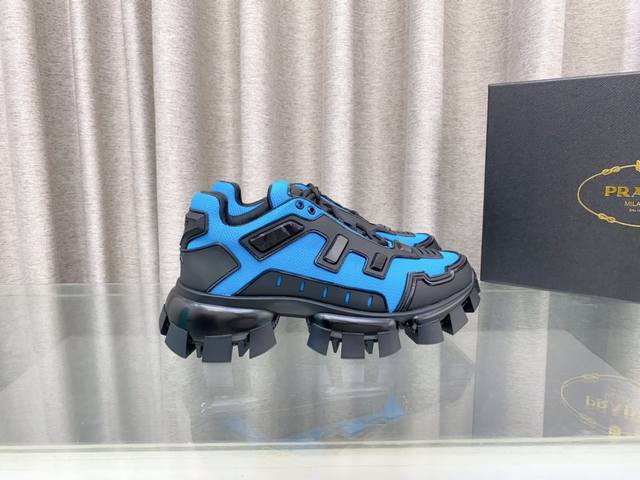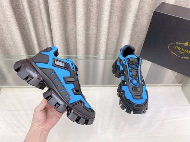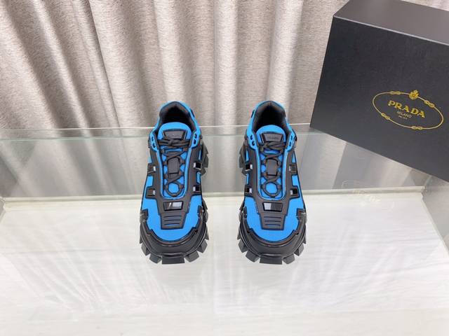 普拉达~Prada Ct系列运动鞋选角织物和橡成打造,诠释繁复精致的鞋型。锯齿状橡胶胎面花纹精雕细琢,橡胶饰片赋子鞋面立体效果。透气织物材质配橡胶饰片