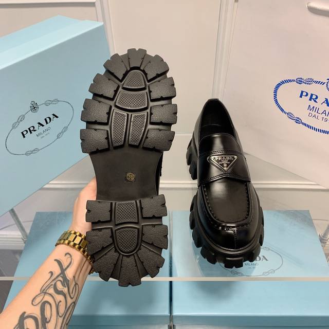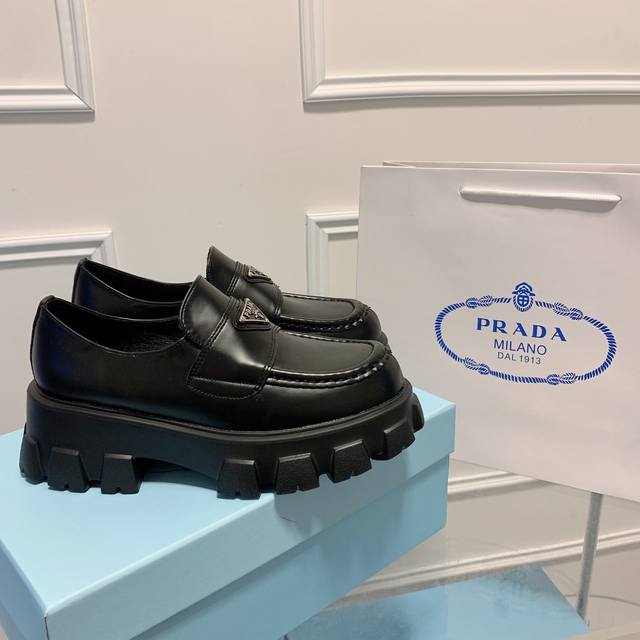 / 橙子出厂价 Prada 普拉达 经典三角标休闲厚底乐福鞋 复古小皮鞋 上脚无敌好看简直万种搭配,随意穿搭拿捏的稳稳的,Hold的各种穿搭场合,简直就是夏天的灵魂