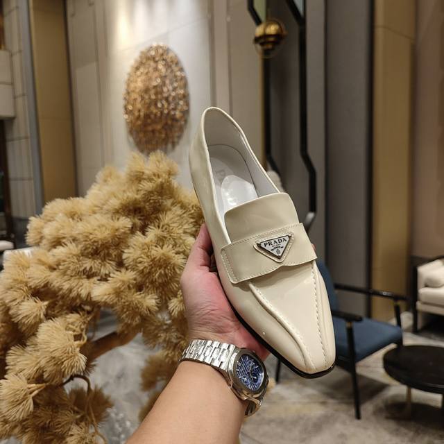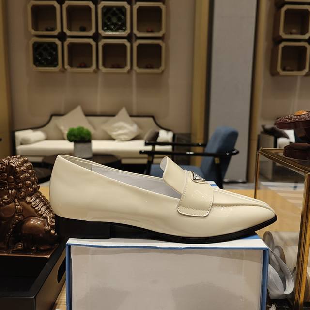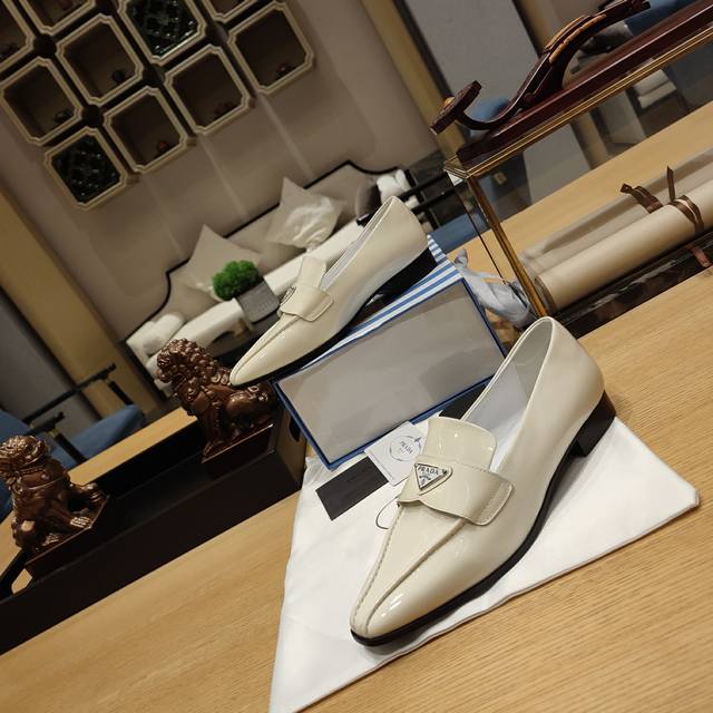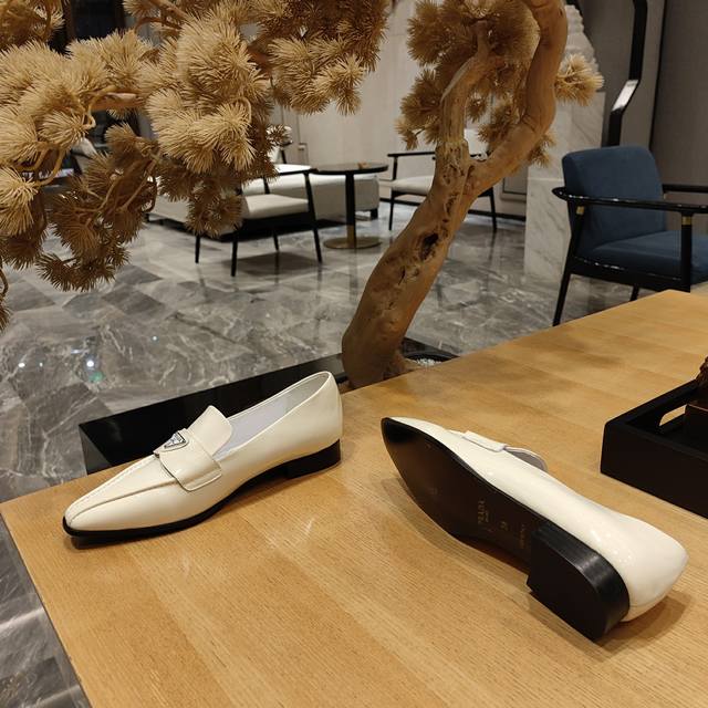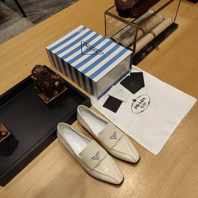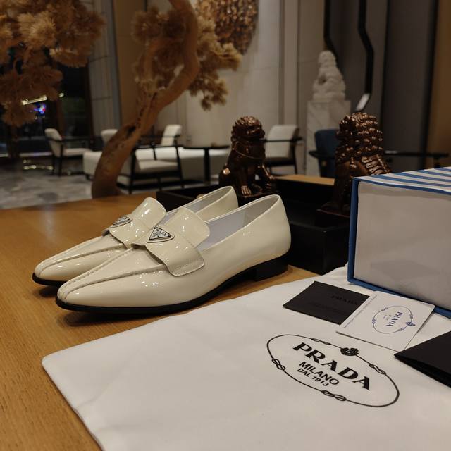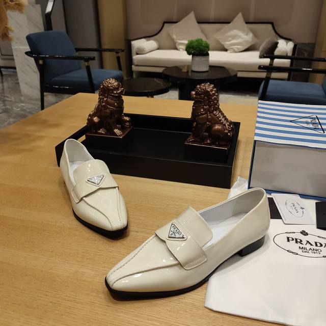 漆皮通勤系列 顶级包装配套最高版本 Prada 2024普拉达最新颖大平跟小方头胆位单鞋。品牌少有的长小方头形漆皮通勤平底单鞋系列。