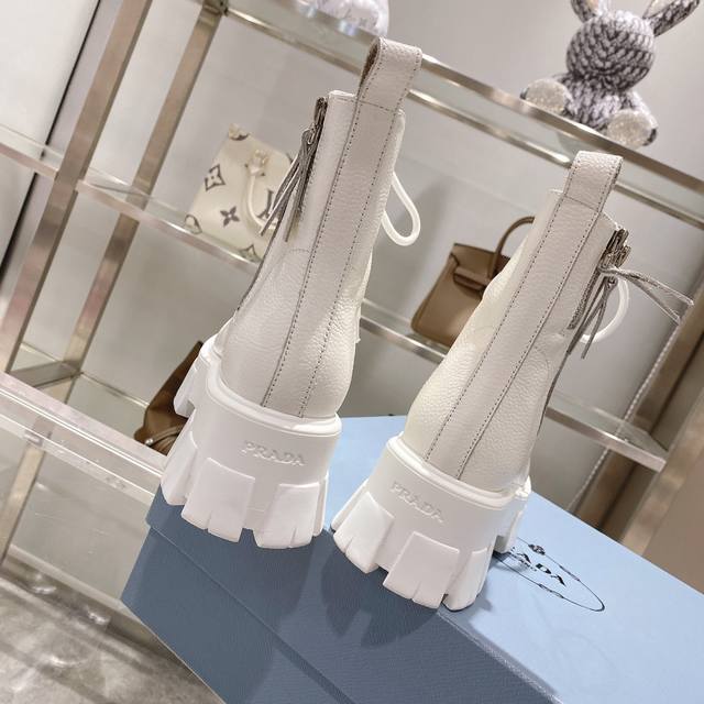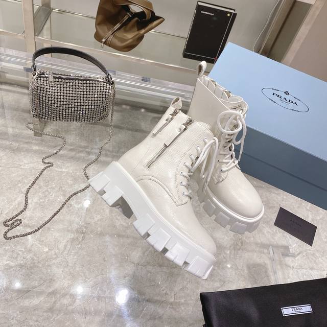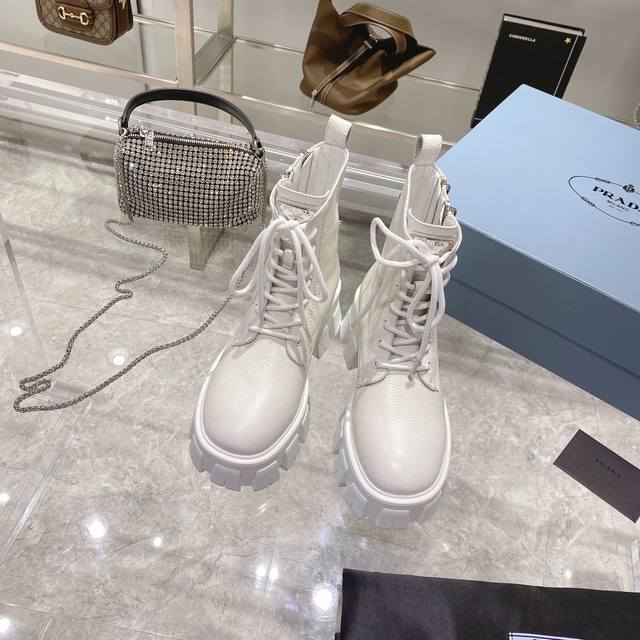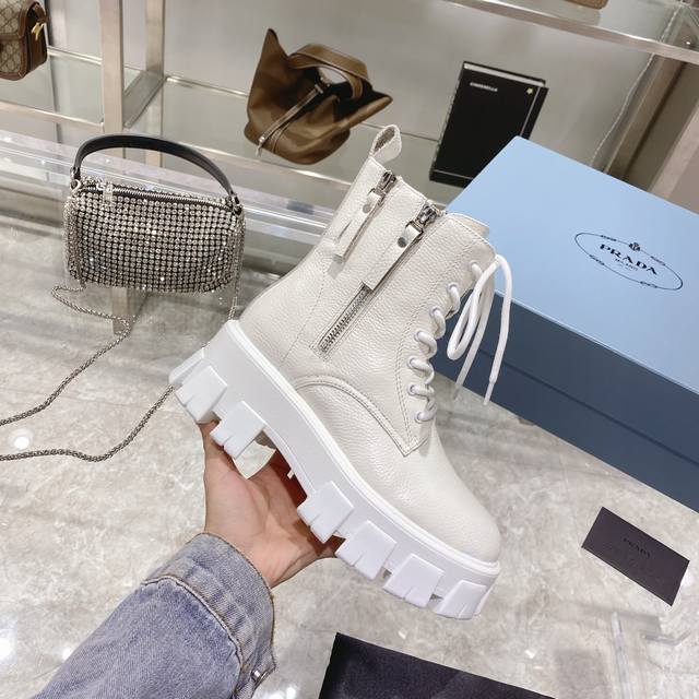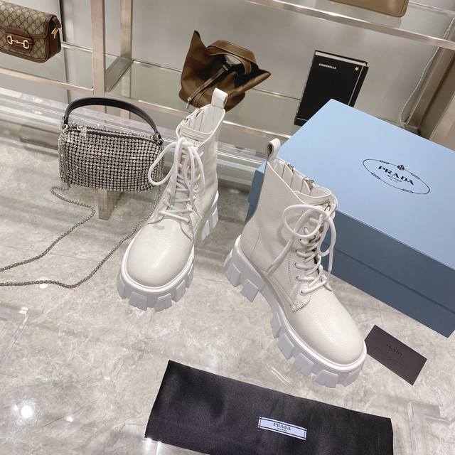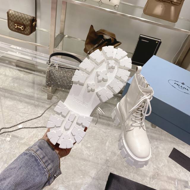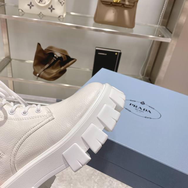 火爆普拉达[抱拳][抱拳][抱拳][抱拳][抱拳] Prada 出厂价 鞋面:进口头层荔枝纹,内里牛皮里, 大底:Tpu+抽真空。增高厚底,原版1比1开版,专柜