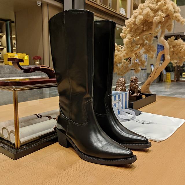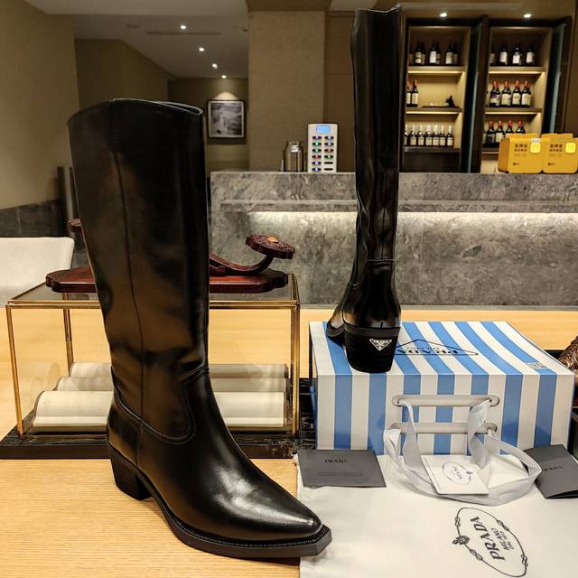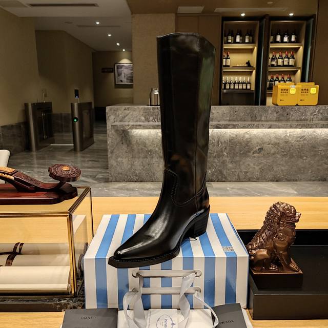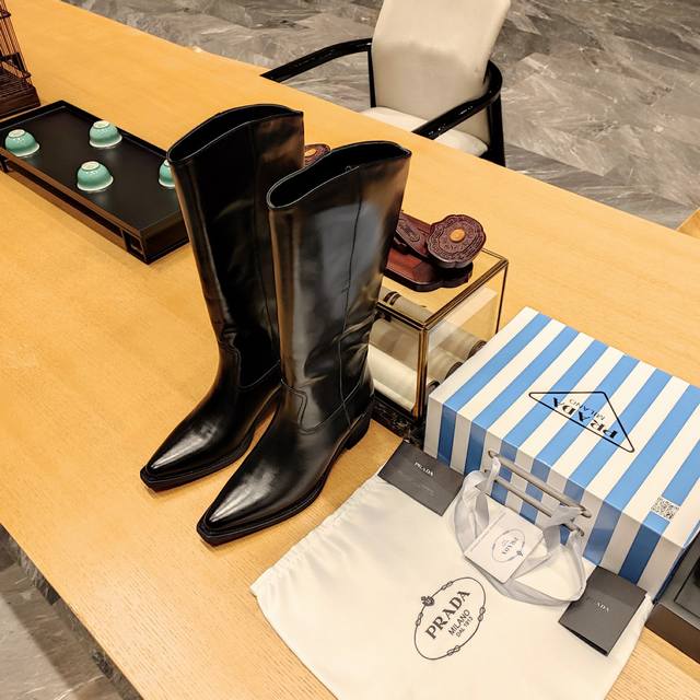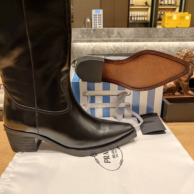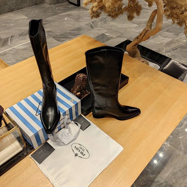 秋冬断货王 顶级包装配套最高版本 Prada 2024普拉达最新颖波西米亚氛围十足的品牌少有的长小方头形长筒西部牛仔靴系列。