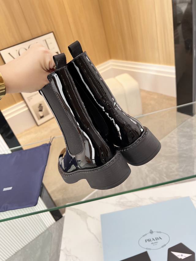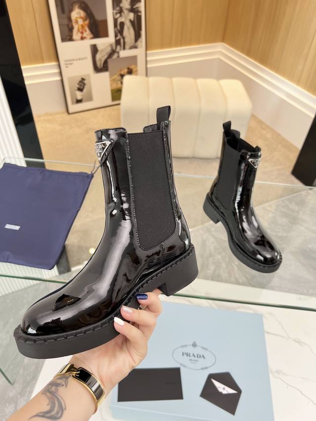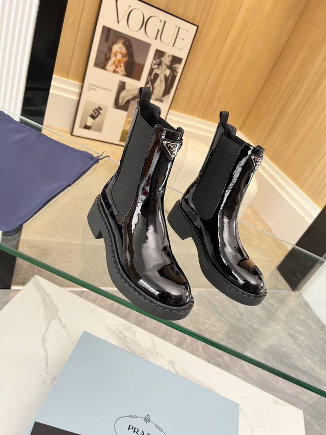 / 级顶sss重磅推出普拉达短靴系列 Prada早秋冬t台走秀网红同款"梦造不夜城",Prada能在重要场合用得上了,清新风带点小贵气的感觉,上脚非常完美穿搭配上此