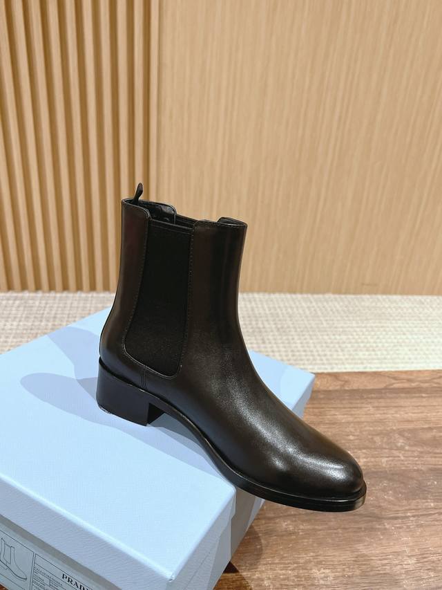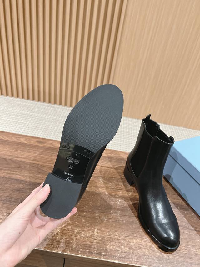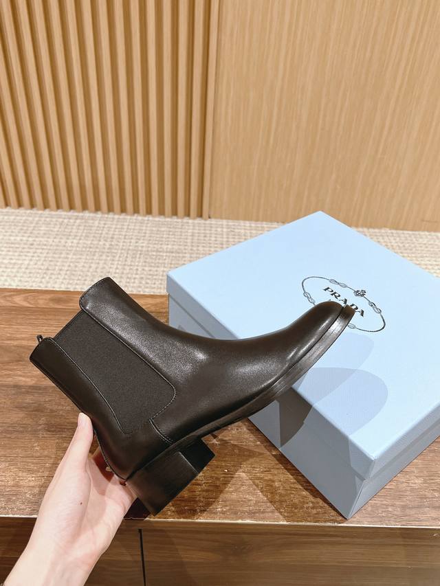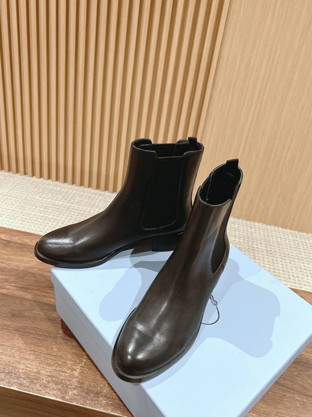 莞产 #普拉达秋冬季新款低跟一脚蹬切尔西靴!