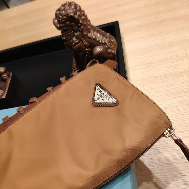 原版三角标logo金属扣配制,釆用进口尼龙面料拼接牛皮工艺,