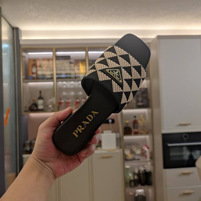 S超级爆系列爆品,弹力编织亲肤面料搭配升级经典阵容,3D立体感与层次分明的双色鞋面,超软的弹力橡筋编织布,一点也不磨脚,光脚或者搭配袜子穿都超级减龄,上脚很好看~~少女风十足的prada自然也没有错过今年的拖鞋风格,如果觉得传统玛丽珍太嗲,那么prada这双方头的甜酷款拖鞋一定不要错过