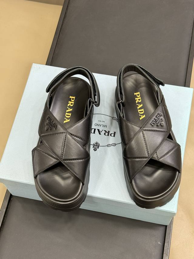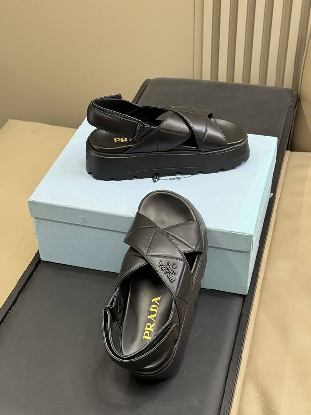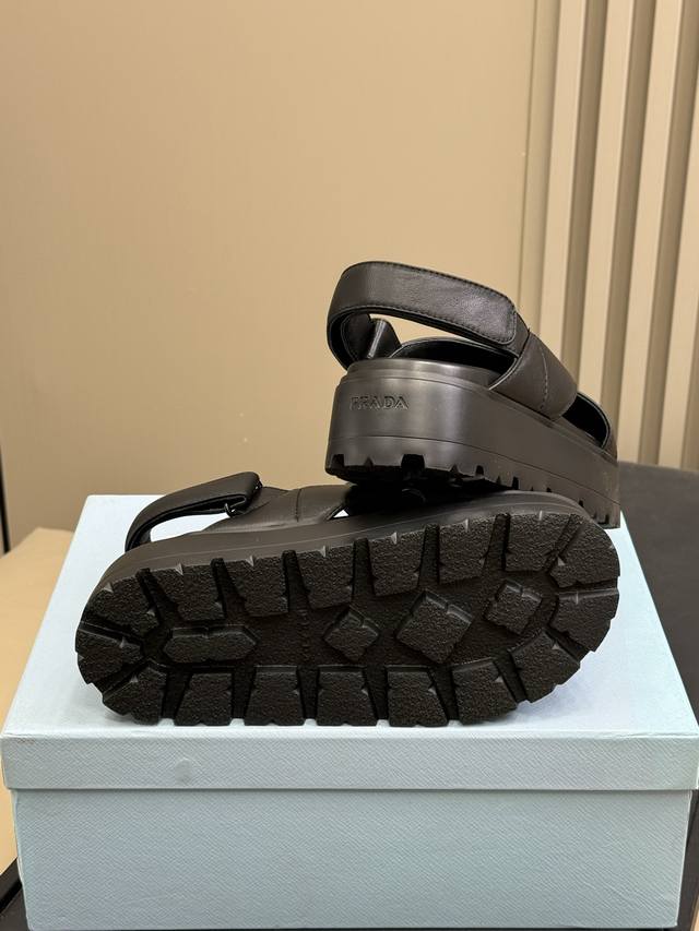 顶级品质 Prada Ss25 New Arrival~ P家25春夏厚底凉鞋新品 妥妥增高神器,太友好了 小羊皮鞋面,质感拉满! Size 35-41