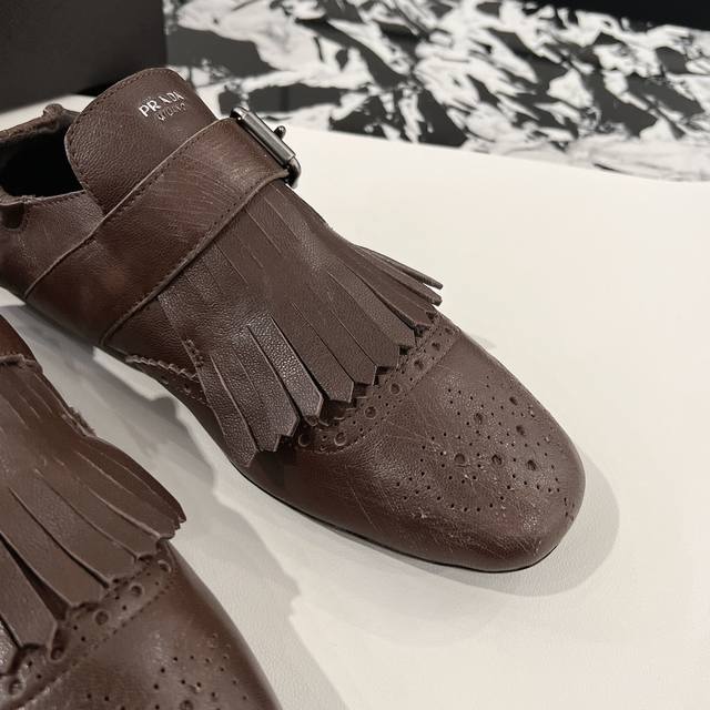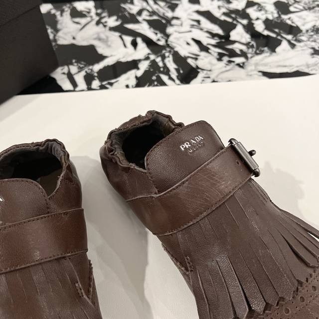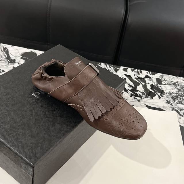 顶级品质prad* 25Ss 普拉达走秀款复古流苏半拖鞋单鞋爆款!走秀款 复古感时髦满满 随意百搭 时尚休闲 独到味道,人人都爱也轻松驾驭 每年都会爆.足以征服你,穿上它,休闲时髦 两不失误 上脚简单帅气