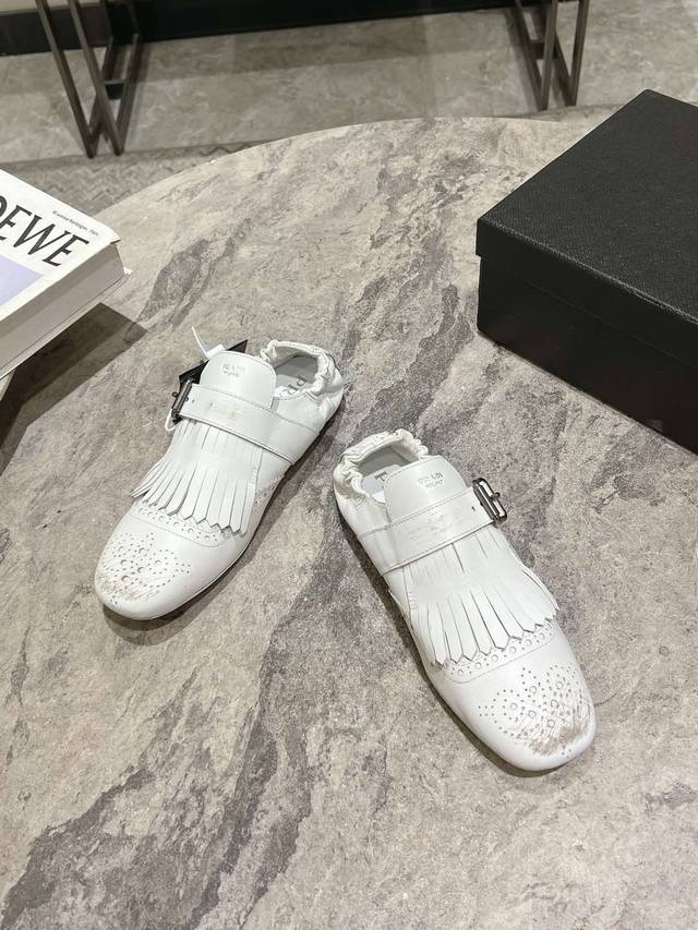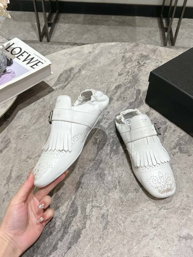 顶级品质prad* 25Ss 普拉达走秀款复古流苏半拖鞋单鞋爆款!走秀款 复古感时髦满满 随意百搭 时尚休闲 独到味道,人人都爱也轻松驾驭 每年都会爆.足以征服你,穿上它,休闲时髦 两不失误 上脚简单帅气
