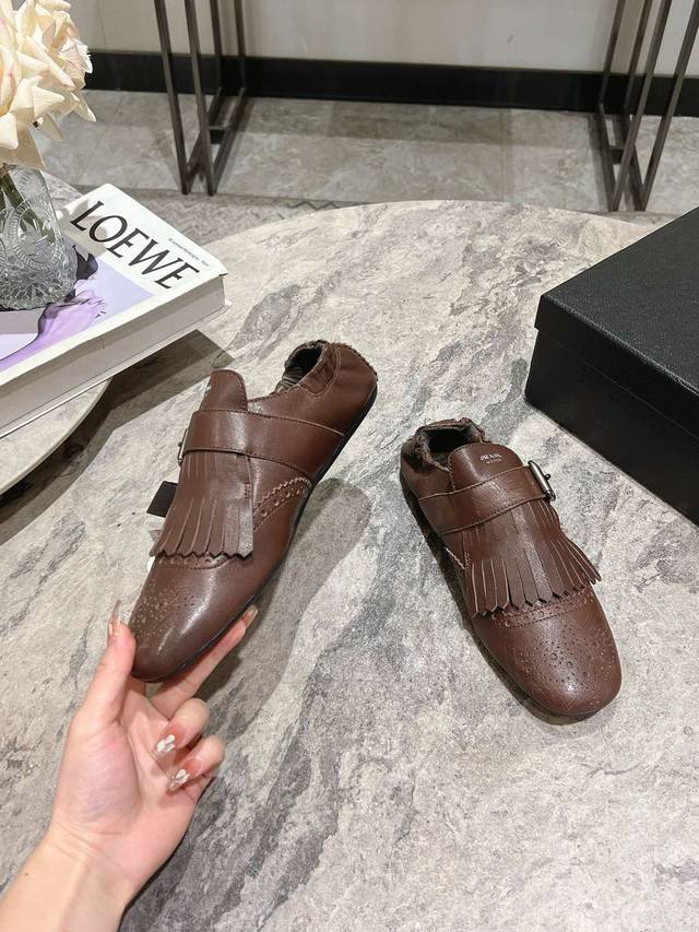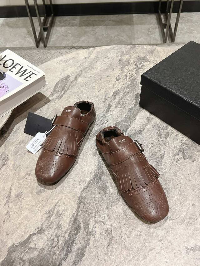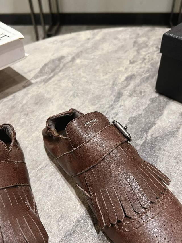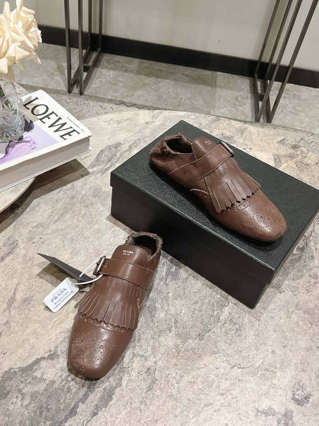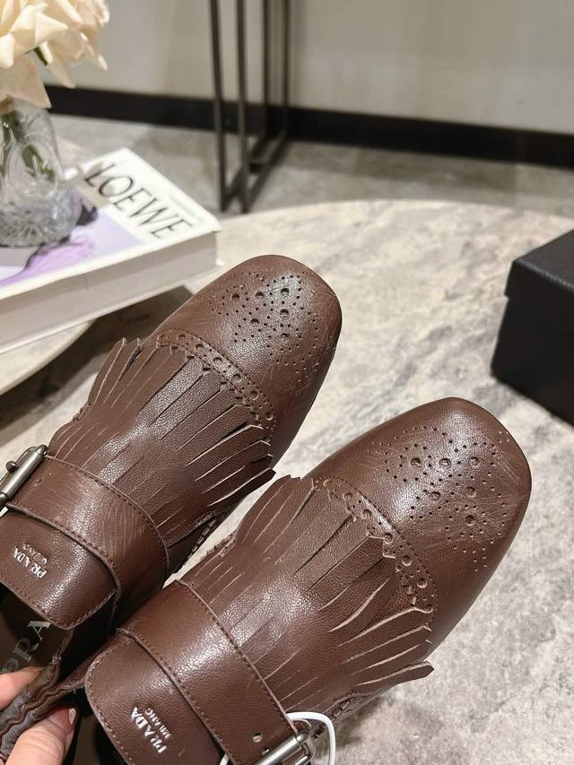 顶级品质prad* 25Ss 普拉达走秀款复古流苏半拖鞋单鞋爆款!走秀款 复古感时髦满满 随意百搭 时尚休闲 独到味道,人人都爱也轻松驾驭 每年都会爆.足以征服你,穿上它,休闲时髦 两不失误 上脚简单帅气