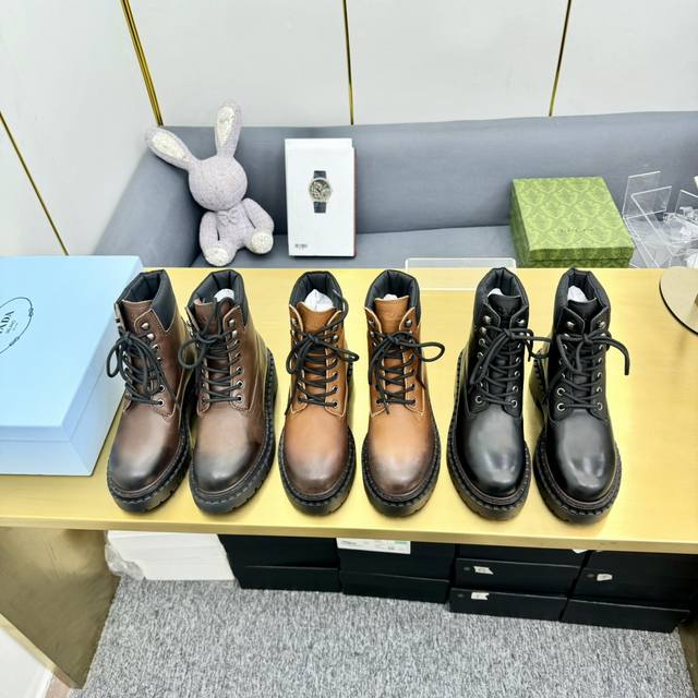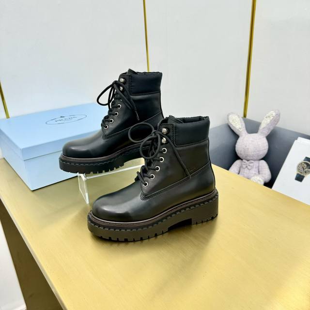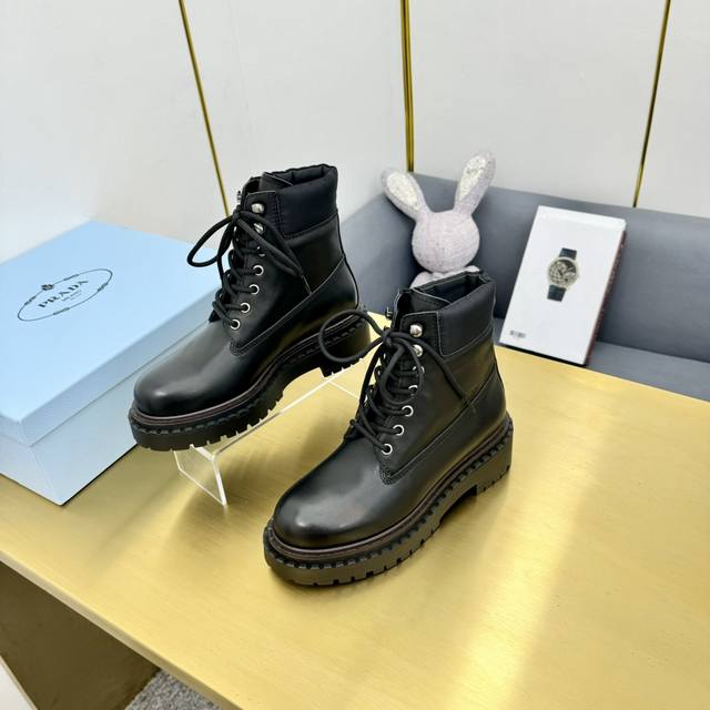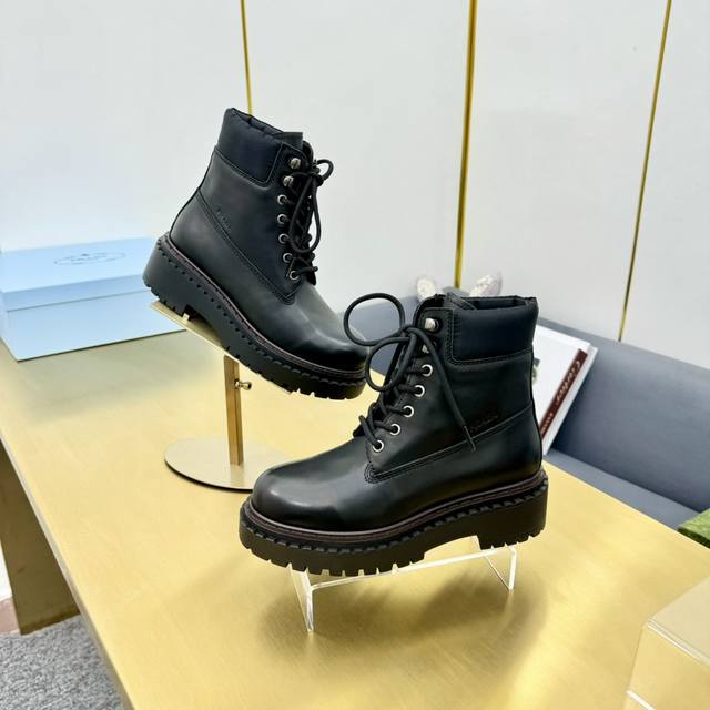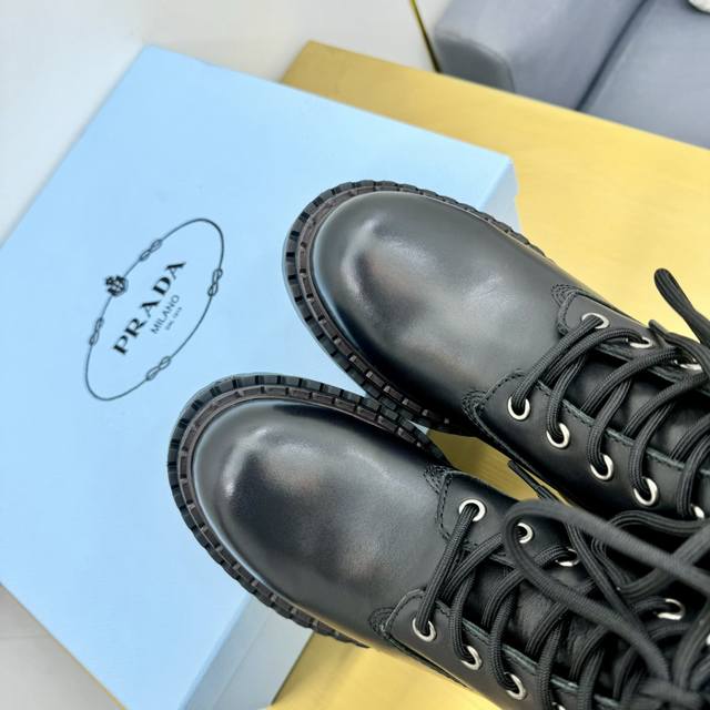 Prad*普拉达2024秋冬新款走秀款布洛克厚底踝靴系列