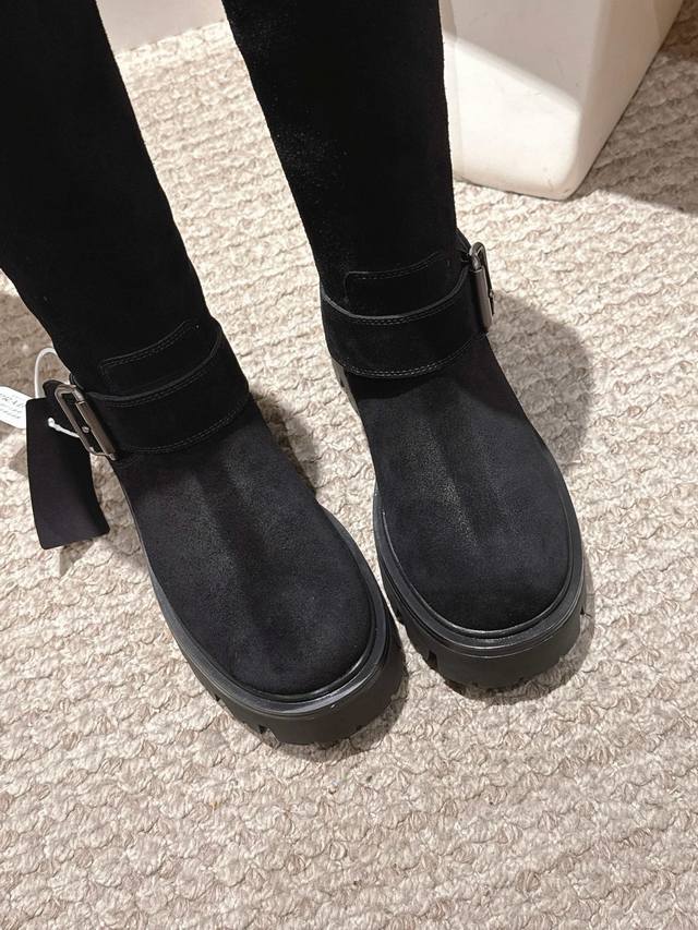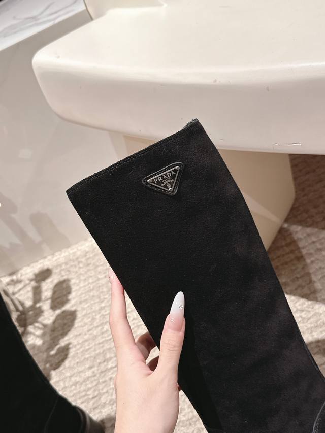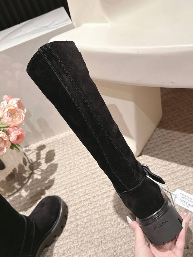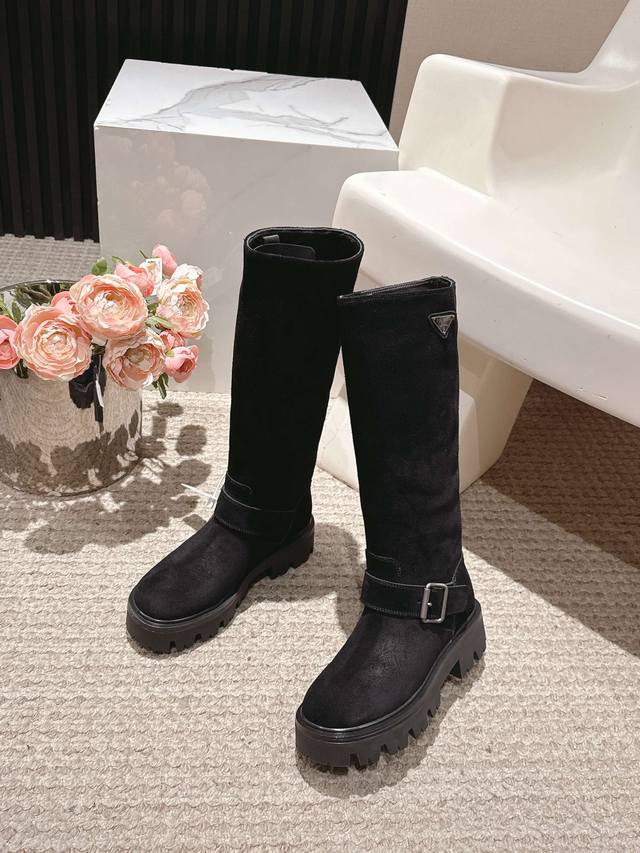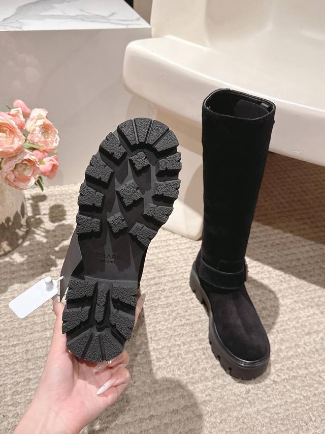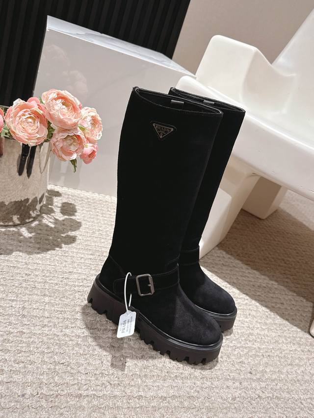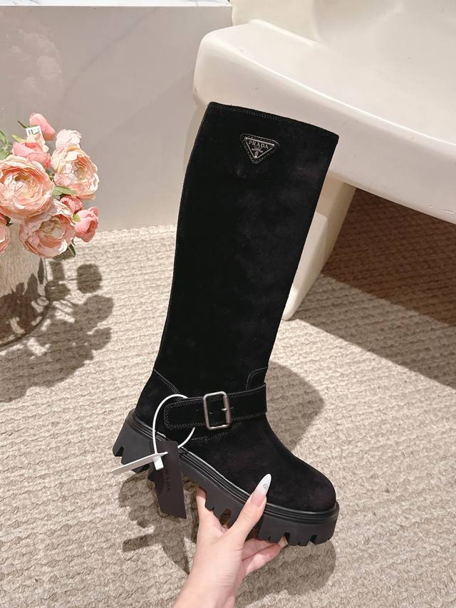 顶级版本牛皮 牛绒 prada 普拉达 最新三角标搭配皮带扣厚底中筒靴马丁靴,非常耐看的一款. 走秀款中筒靴 原版 版型超正 超经典百搭款 超级耐看 耐穿 不过