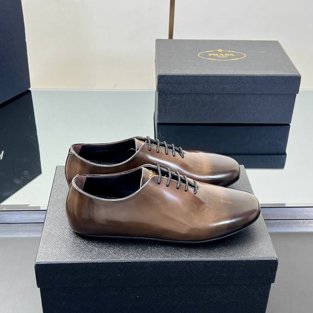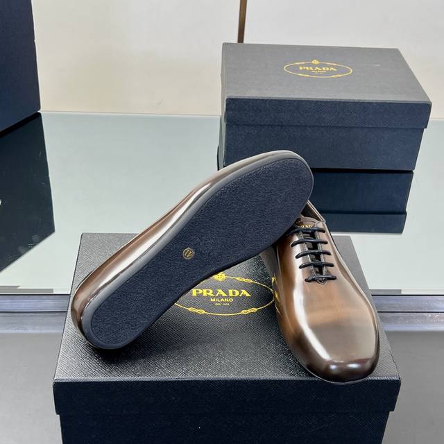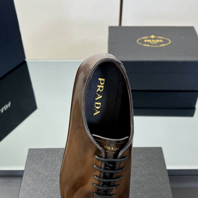 普拉达这款系带鞋采用经典设计和prada标志性亮面皮革材质,散发精致优雅气质。锥形廓形,轻薄的橡胶鞋底结合内底支撑,格外舒适。鞋舌饰有丝网印花字母徽标,彰显现代时尚优雅风范。