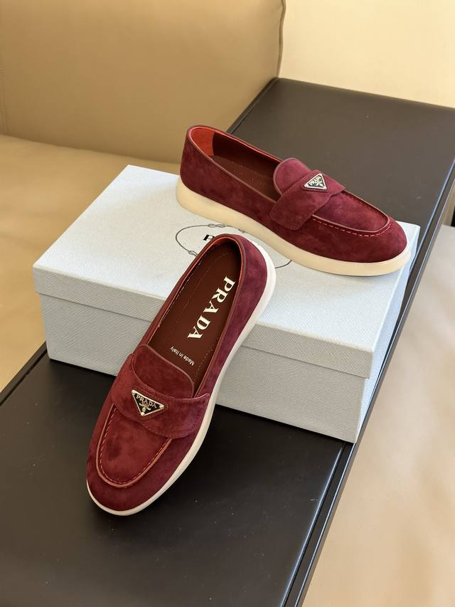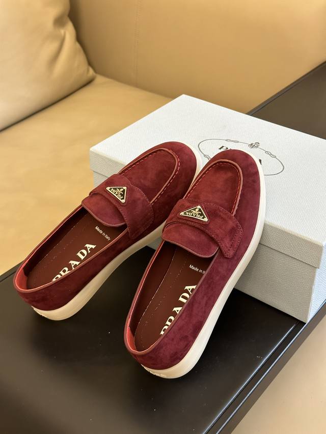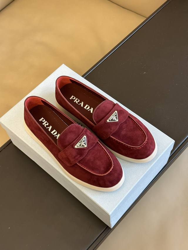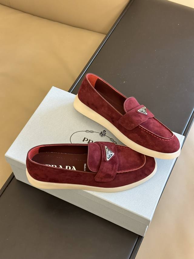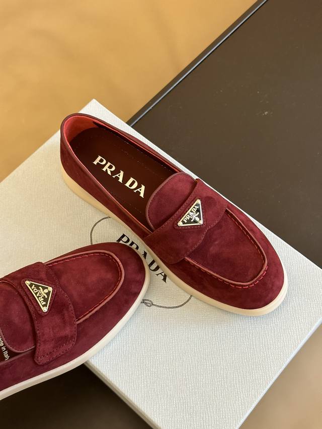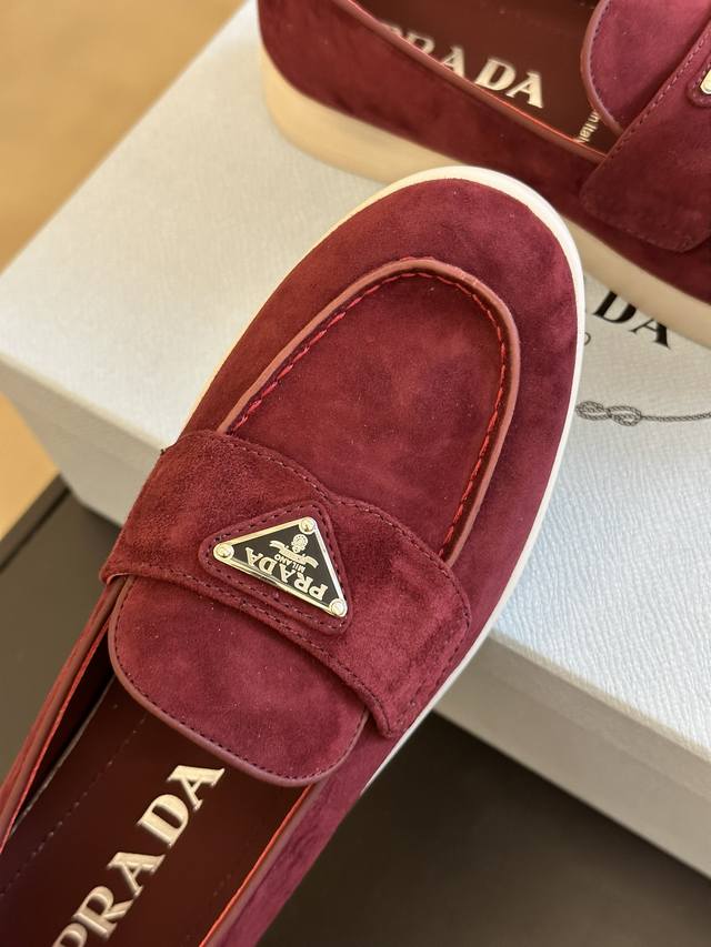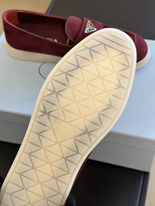 顶级版本 Prada 新晋爆款~Saint-Tropez 系列 跟lp甲板鞋旗鼓相当呀有老钱风韵味,三角标加持,时髦度略胜lp 好看耐看,非常舒服!四季可穿的决