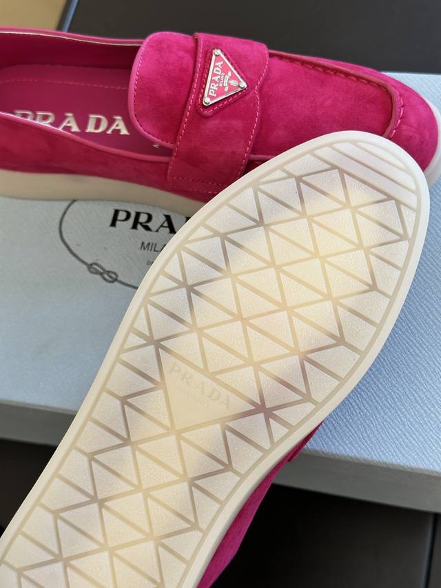 顶级版本 Prada 新晋爆款~Saint-Tropez 系列 跟lp甲板鞋旗鼓相当呀有老钱风韵味,三角标加持,时髦度略胜lp 好看耐看,非常舒服!四季可穿的决