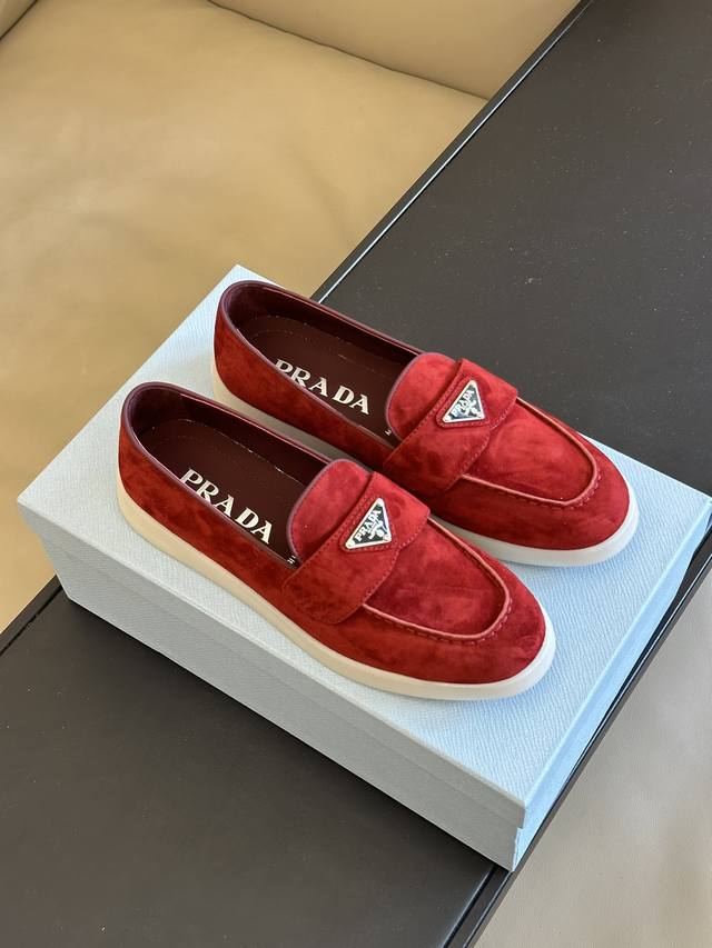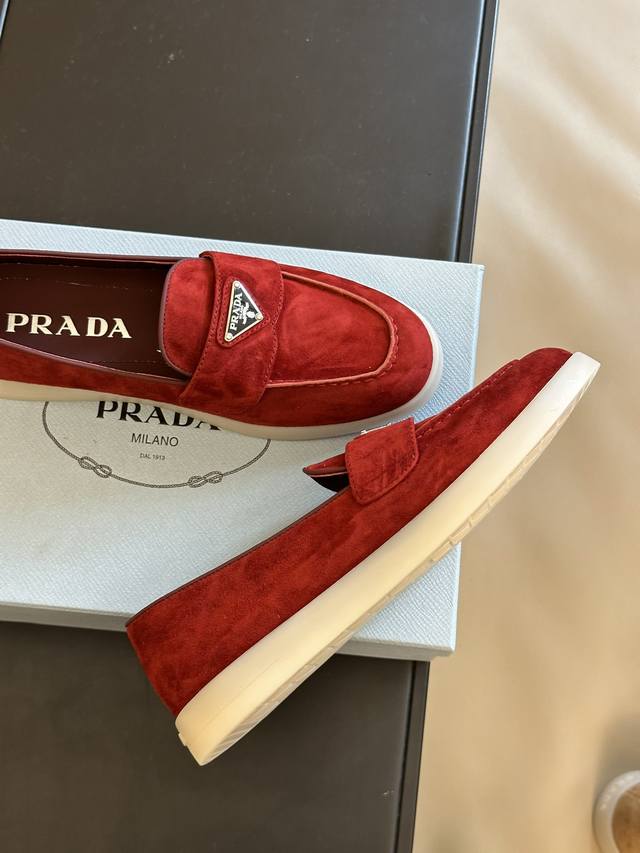 顶级版本 Prada 新晋爆款~Saint-Tropez 系列 跟lp甲板鞋旗鼓相当呀有老钱风韵味,三角标加持,时髦度略胜lp 好看耐看,非常舒服!四季可穿的决