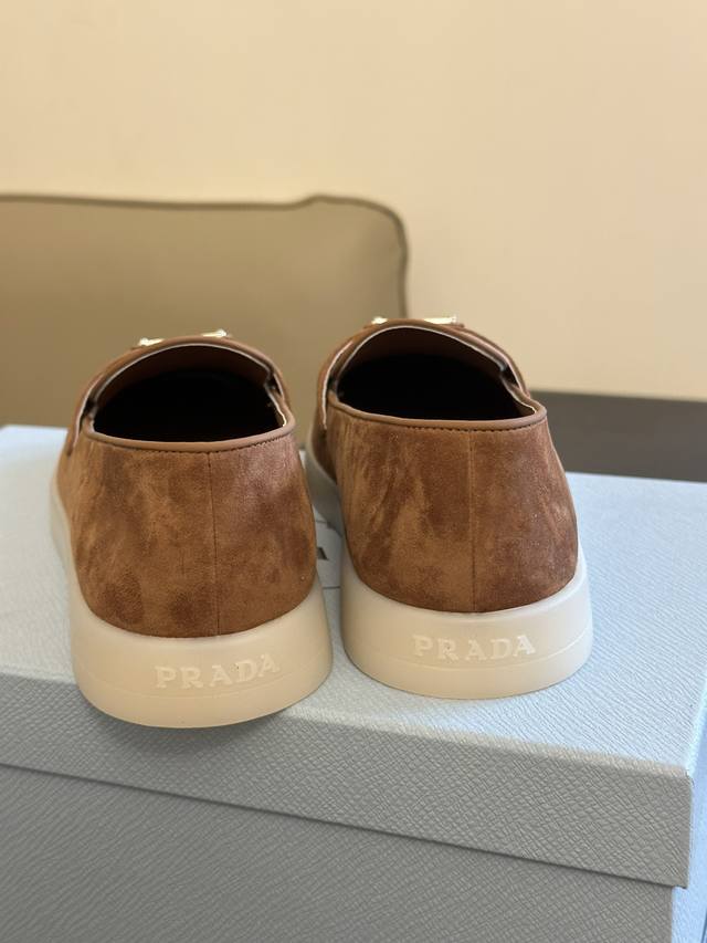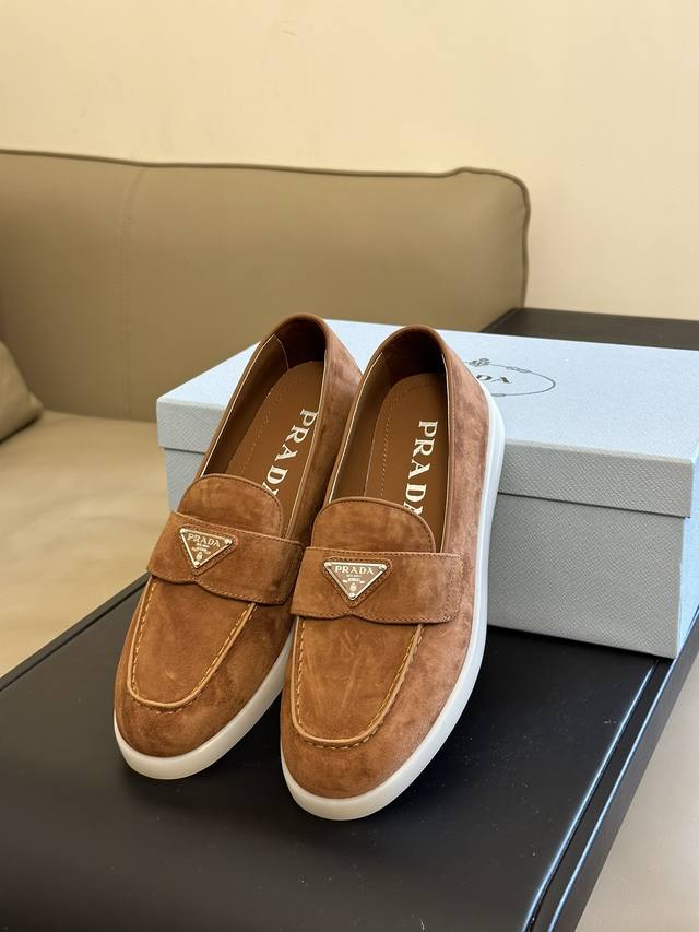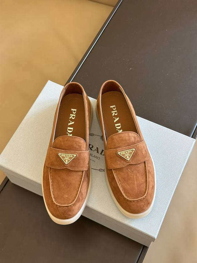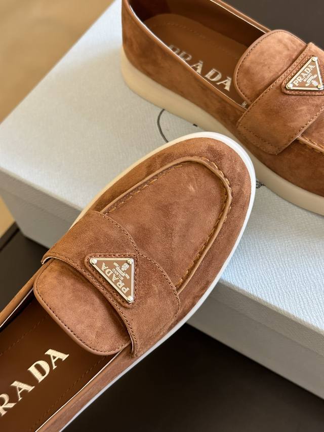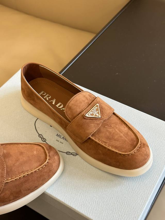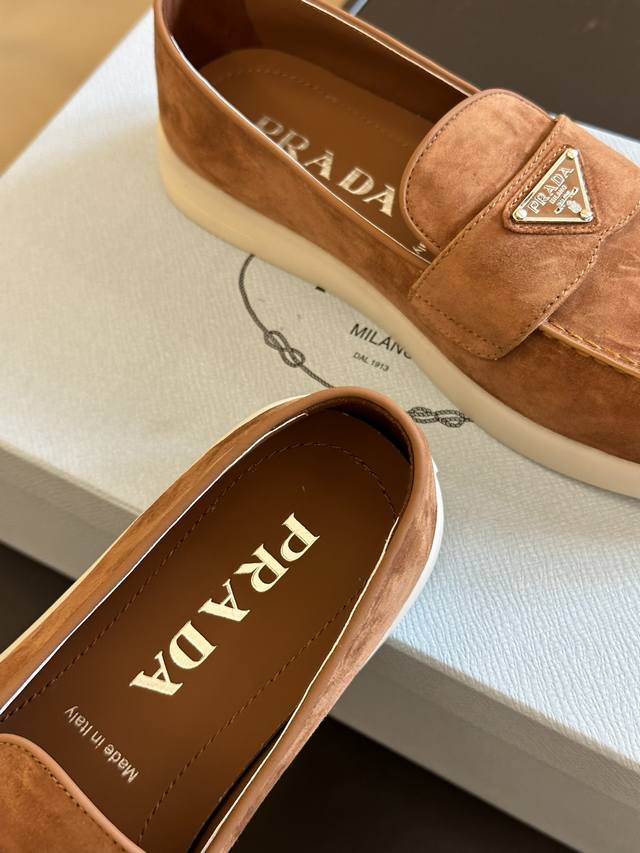顶级版本 Prada 新晋爆款~Saint-Tropez 系列 跟lp甲板鞋旗鼓相当呀有老钱风韵味,三角标加持,时髦度略胜lp 好看耐看,非常舒服!四季可穿的决