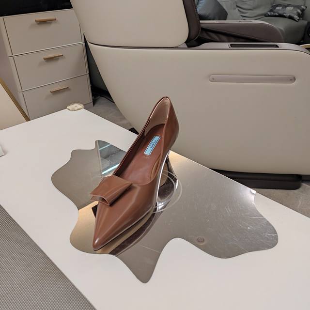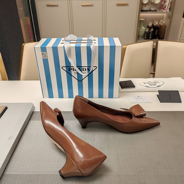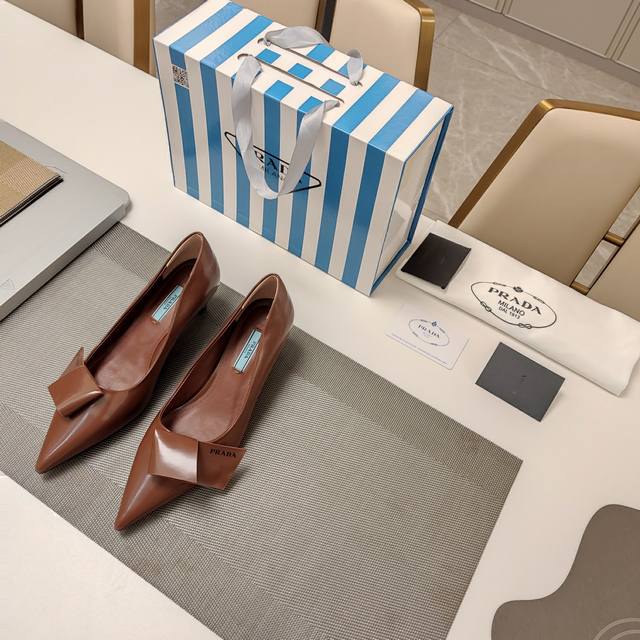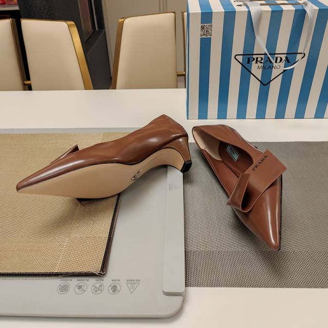 Prada24Ss“T台秀款”,飞机鞋系列新款,对折耳花头飞机穆勒单鞋。