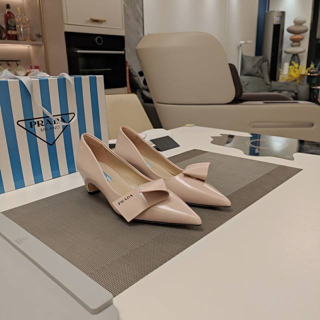 Prada24Ss“T台秀款”,飞机鞋系列新款,对折耳花头飞机穆勒单鞋。