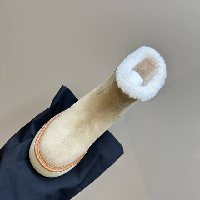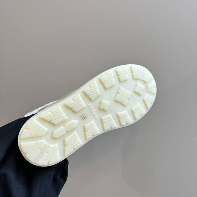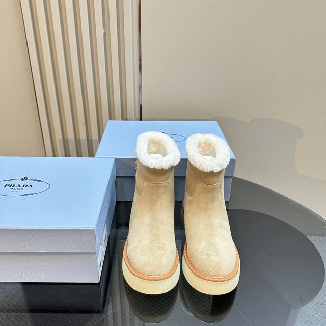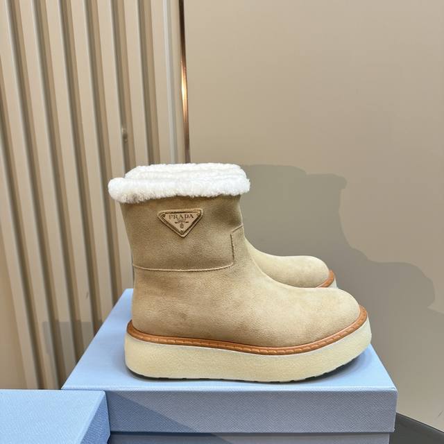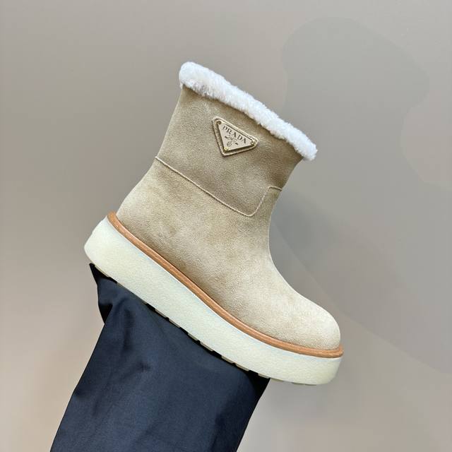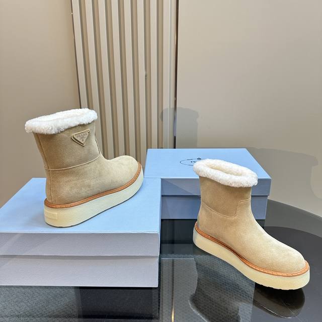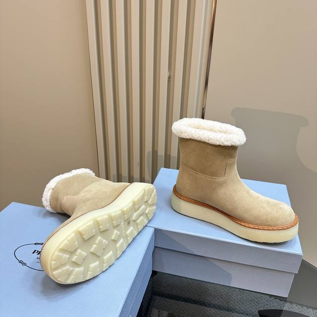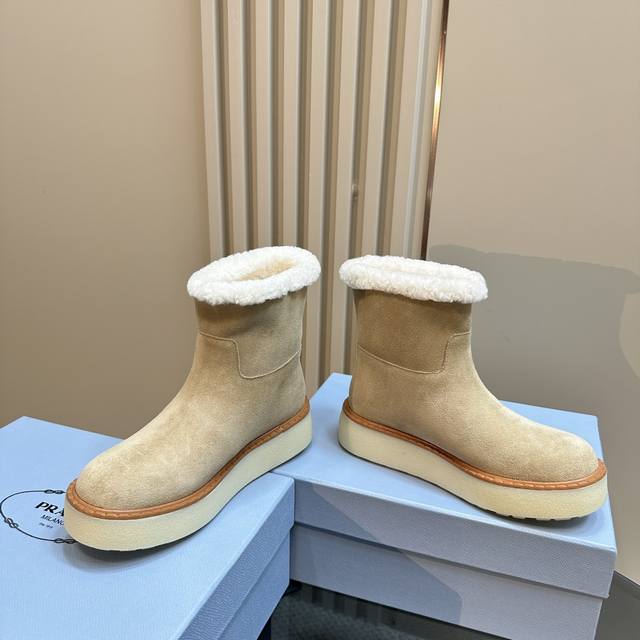 Prada*普拉达 Ss秋冬新款绑带雪地靴真羊毛短靴
