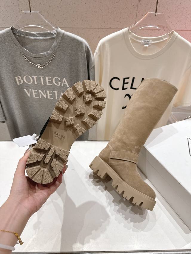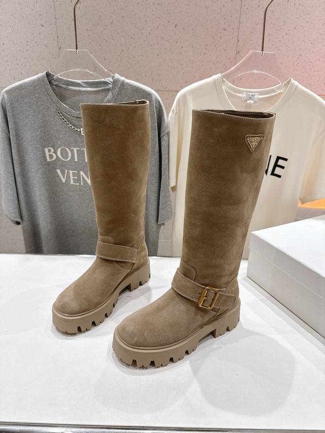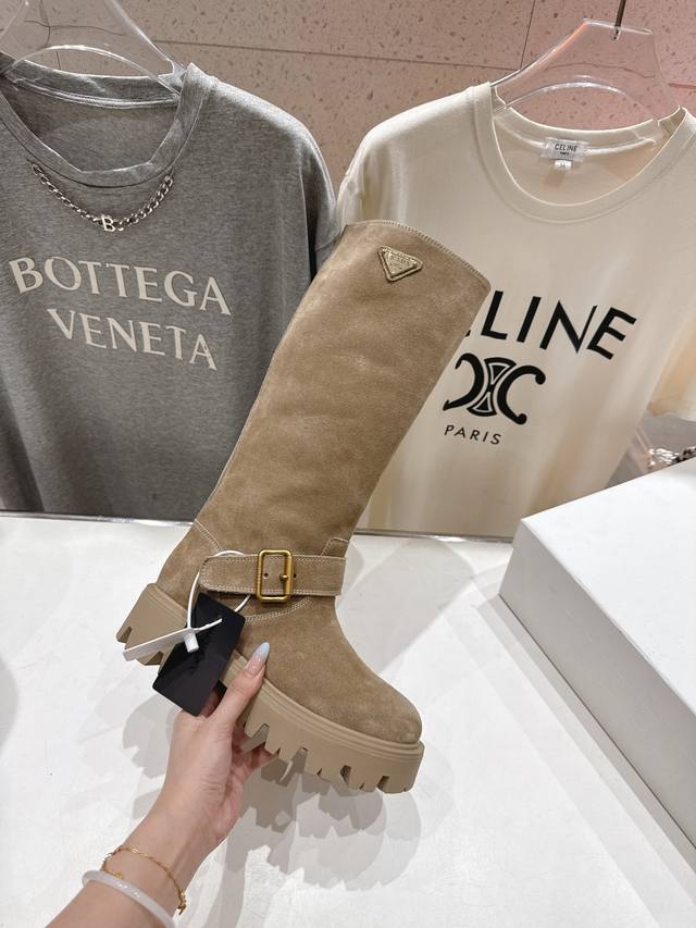 prada 普拉达F029 2025Ss秋冬新款三角扣厚底长靴马丁靴,非常耐看的一款