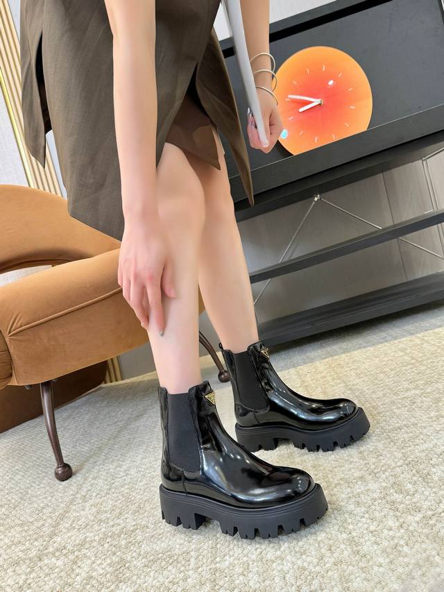 Prada 普拉达 2024Ss秋冬走秀款 新潮坦克厚底短靴...