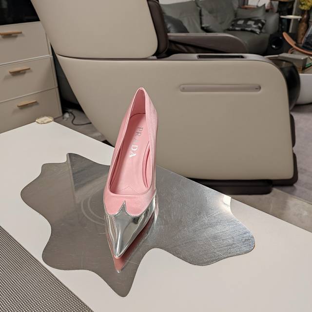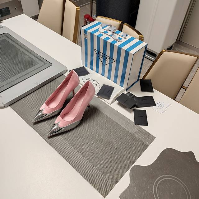 2025Ss Prada春夏简约风,好看哭了,各路网红名媛种草爆款,唤醒对裙裾、束身衣骨撑和胸衣曲线的想象,精简至极~超级爆系列爆品,标志性logo于鞋跟或垫脚,还有棱形尖头,棱角线条分分明显。