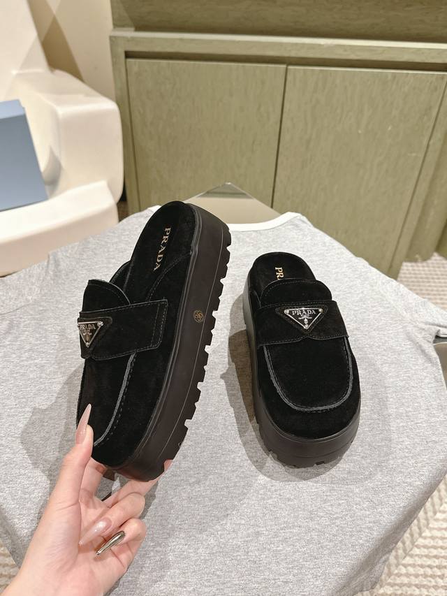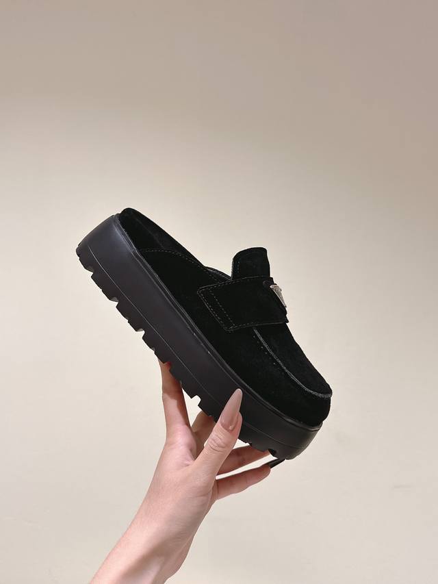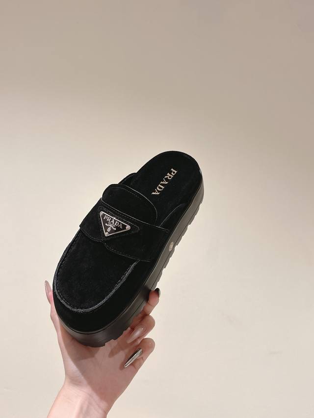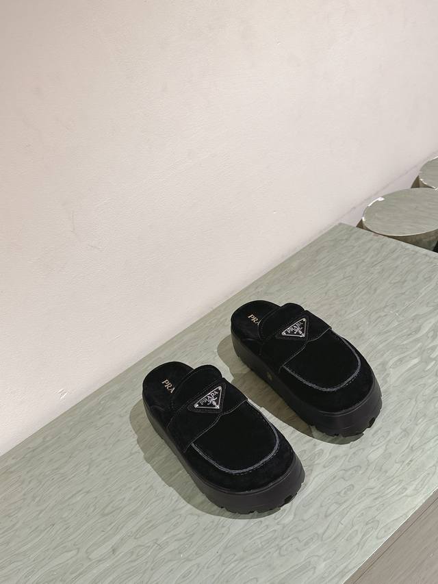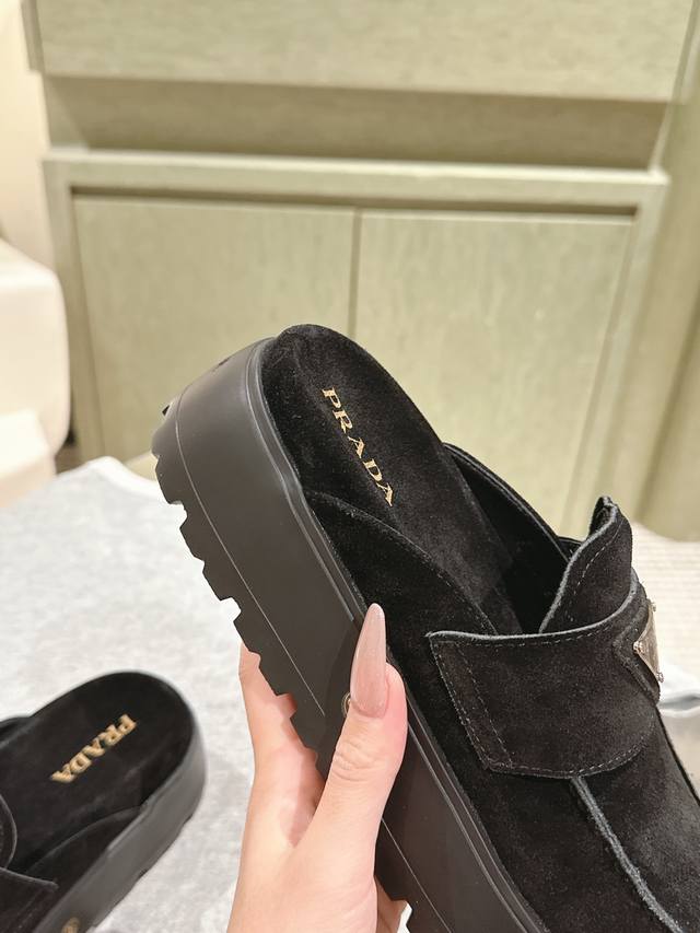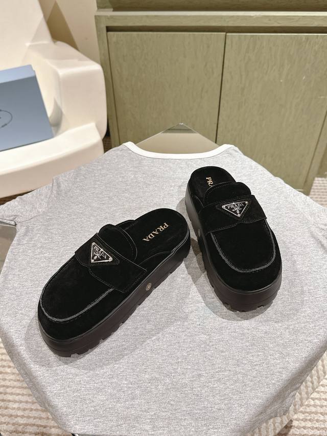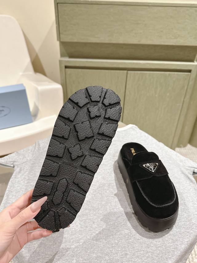 一腳蹬厚底 普拉达新款,这款牛筋底上脚非常舒适,今年非常爆,穿上 增高 休闲两不误,清爽的表现足以表达对鞋子的个个细节的把控,