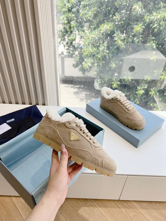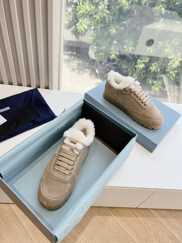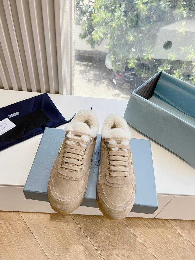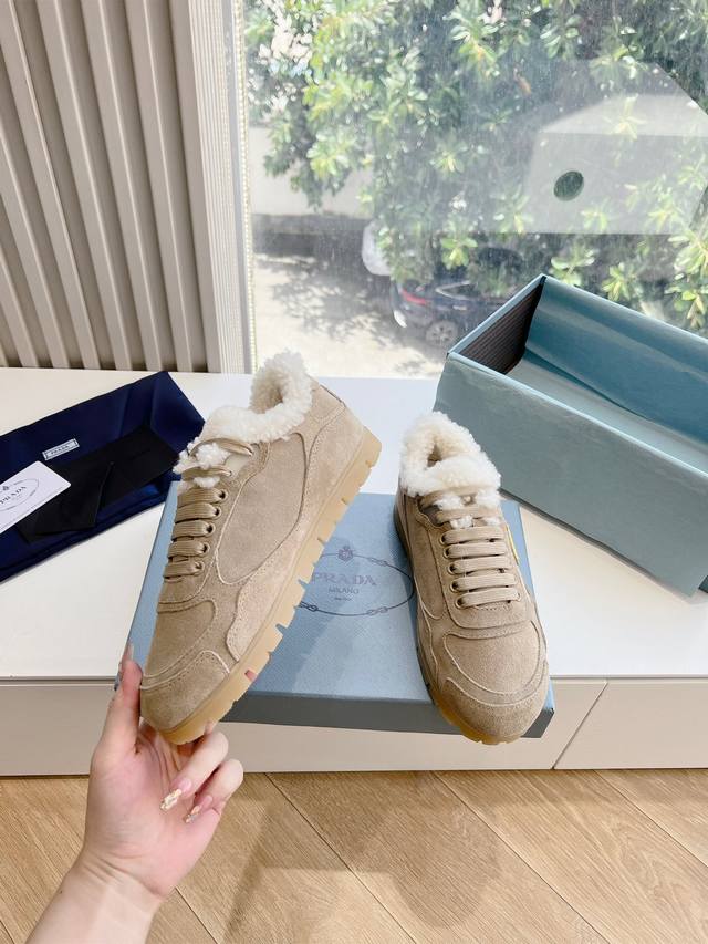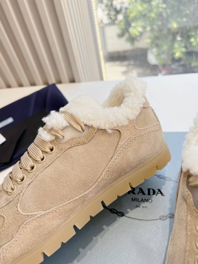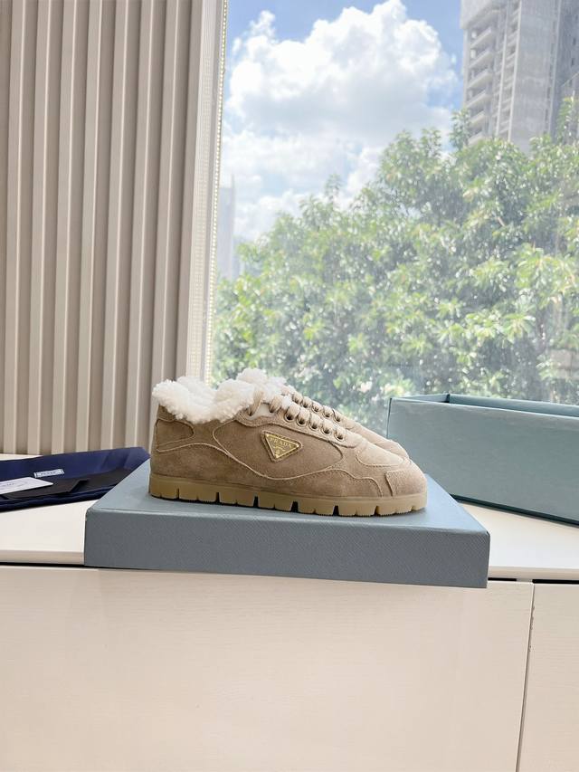 / G027Prad代购级别普拉达 秋冬德训鞋运动毛毛鞋棉鞋板鞋皮革运动鞋让整双鞋轻便舒适 鲜艳色彩 满足不同风格时髦人士的多种选择,每一个设计元素都踩在时髦点上!