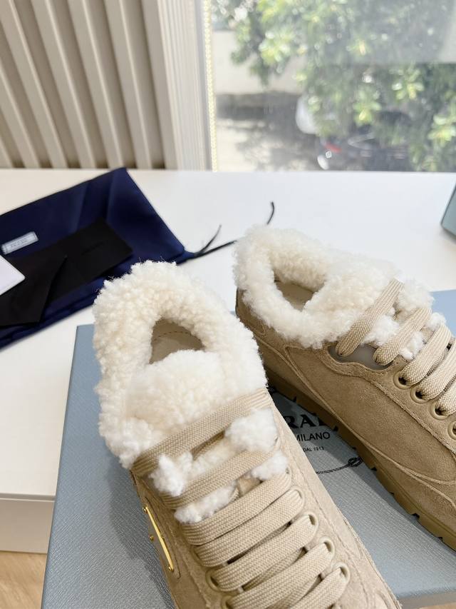 G027Prad代购级别普拉达 秋冬德训鞋运动毛毛鞋棉鞋板鞋皮革运动鞋让整双鞋轻便舒适 鲜艳色彩 满足不同风格时髦人士的多种选择,每一个设计元素都踩在时髦点上!