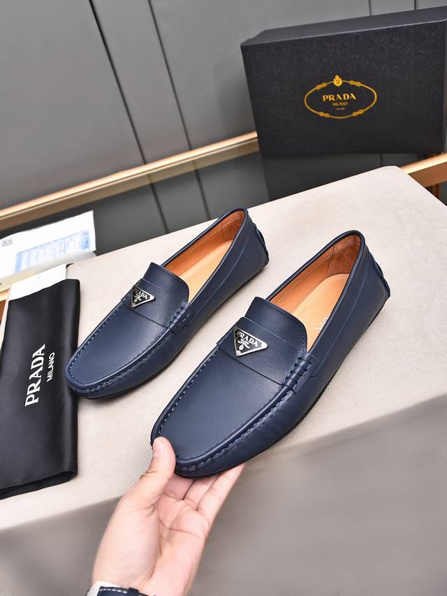 pp 普拉达豆豆男鞋 2024豆豆鞋男士超a超潮款时尚休闲驾车便鞋豆豆鞋 进口头层牛皮+透气皮里!超滑质感 吸汗透气 法国乐福套脚设计风格 低调大方 上脚效果超赞..男鞋码数:现货38-44码。45,46可订做。颜色:两色选择。
