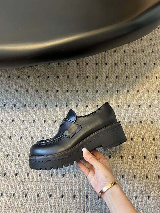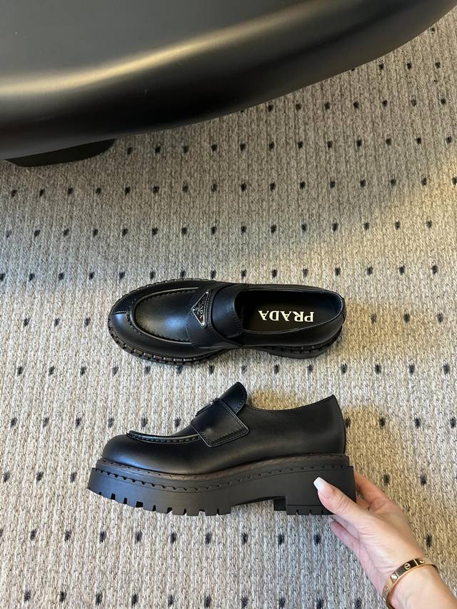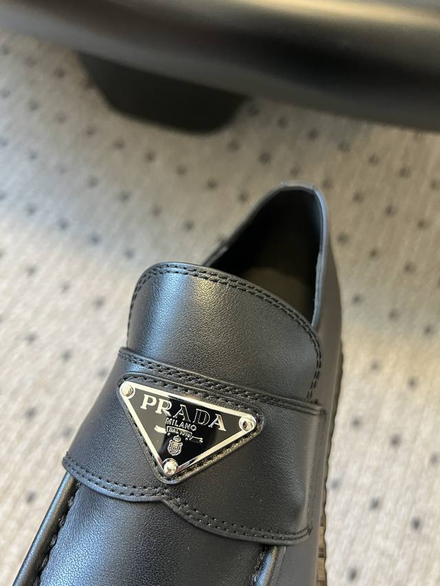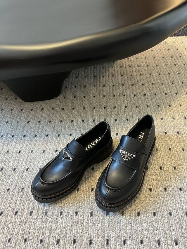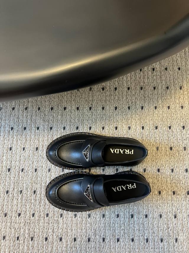 prad*普拉达 软牛皮厚底经典三角标乐福鞋