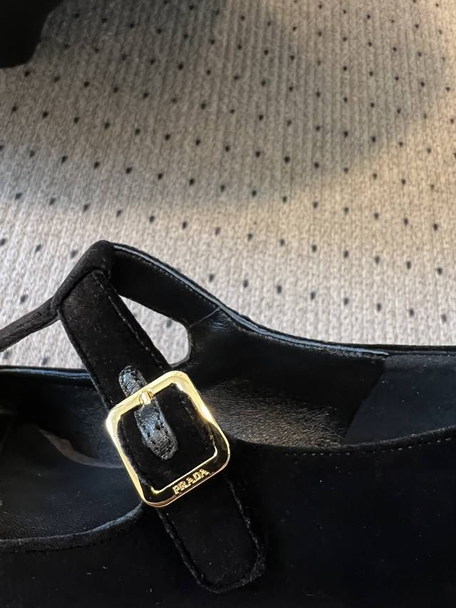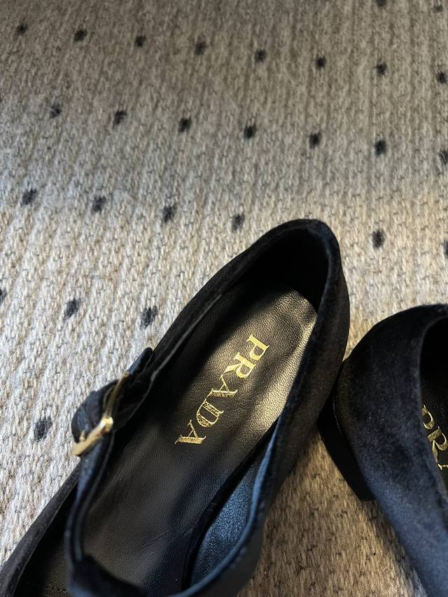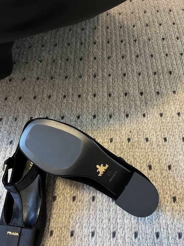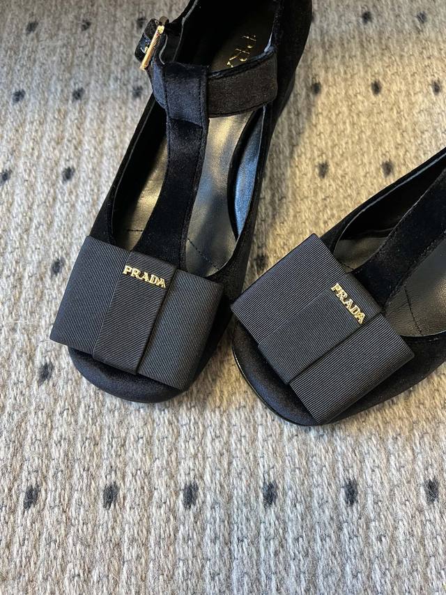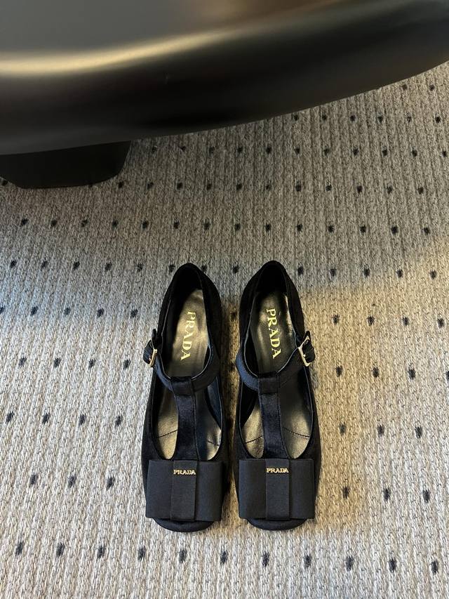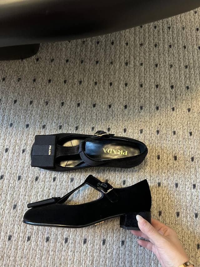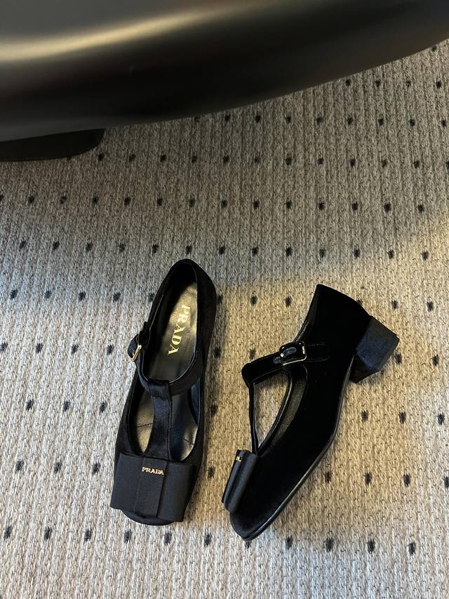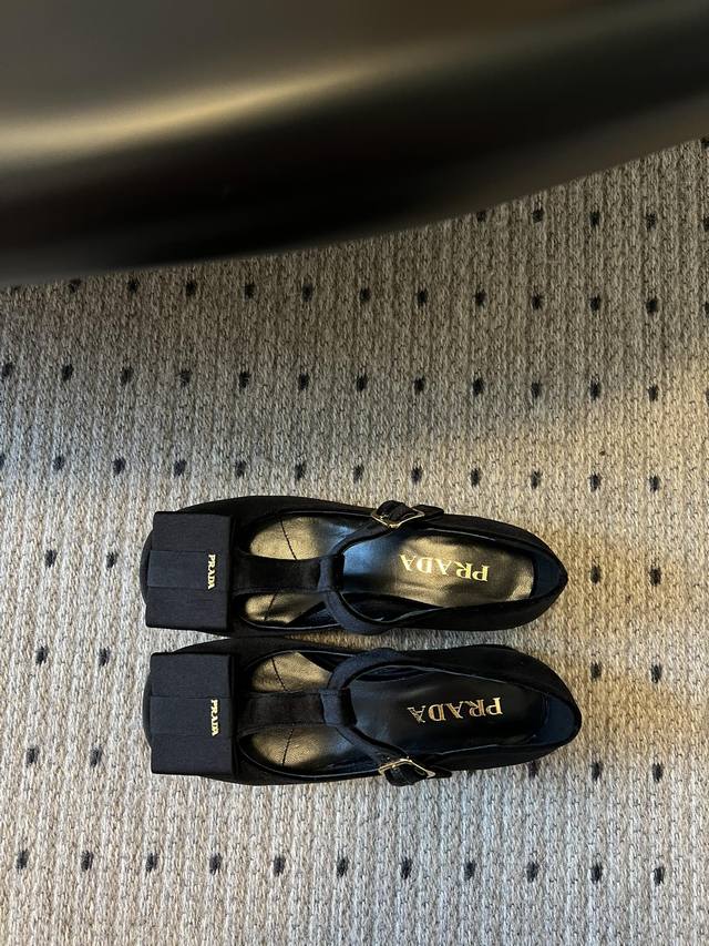 prad*普拉达 25年早春新款粗跟单鞋女鞋圆头蝴蝶结玛丽珍