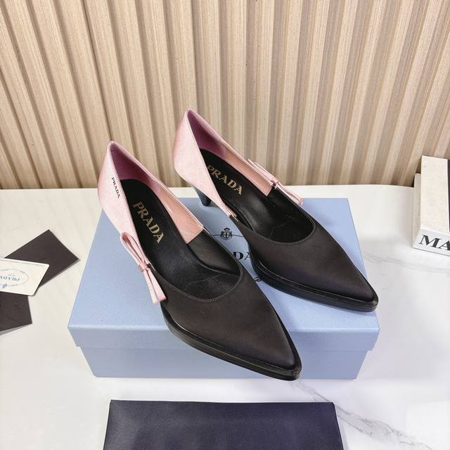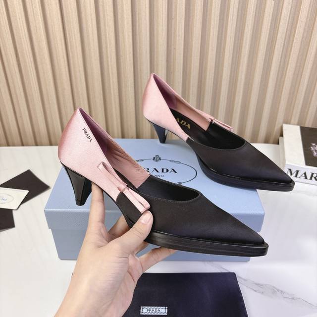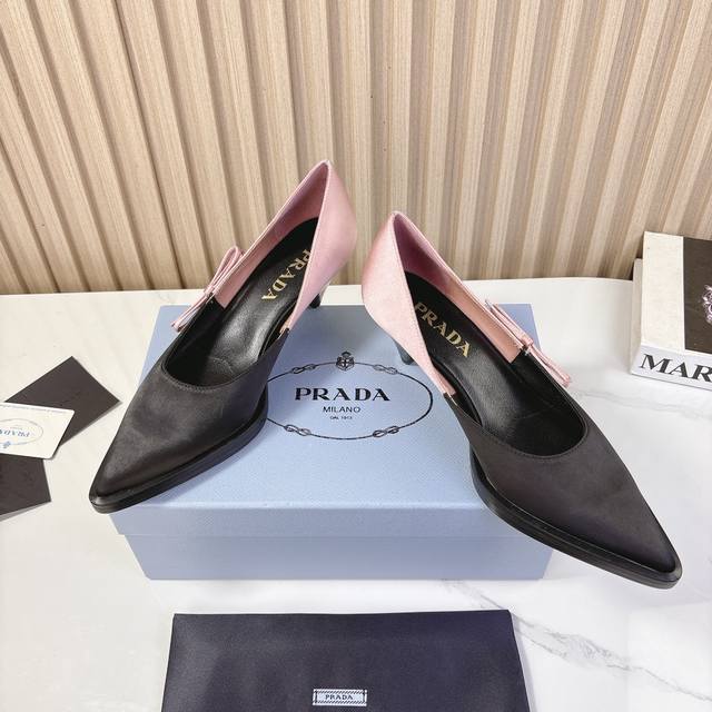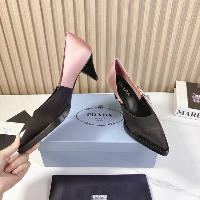 Pra*D普拉*达2024Vs秋冬最新走秀爆款时装单鞋系列尖头粗跟单鞋Prada早春t台走秀网红同款"造梦不夜城",Prada能在重要场合上用得上了,小清新风带