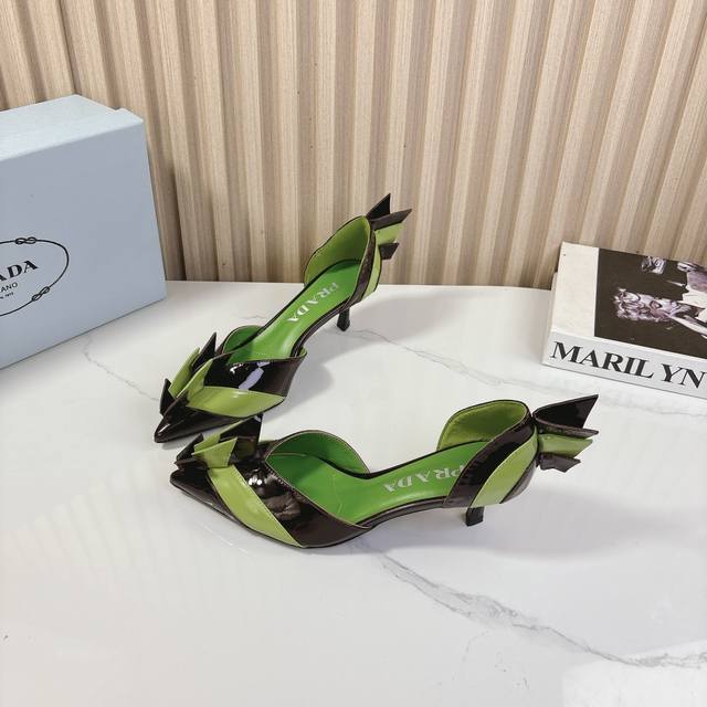 pra*D普拉*达2024Vs秋冬最新走秀爆款时装单鞋系列 尖头中空单鞋 Prada早春t台走秀网红同款"造梦不夜城",Prada能在重要场合上用得上了,小清新