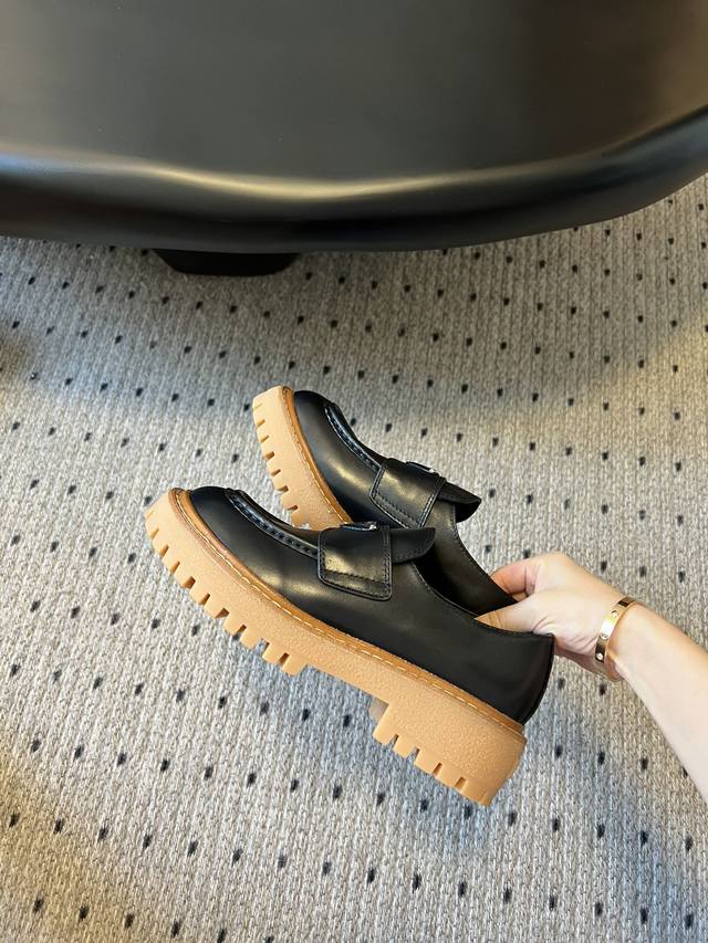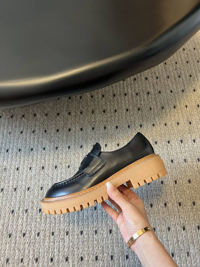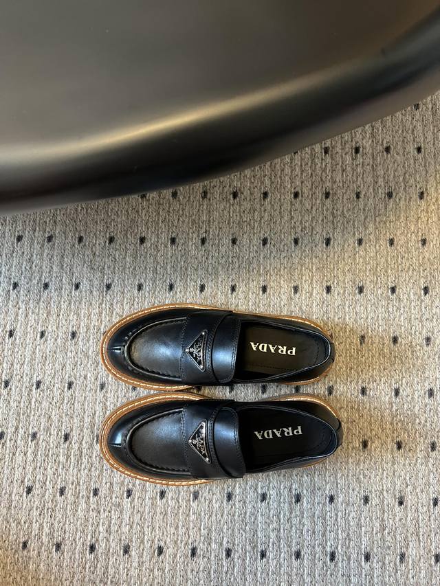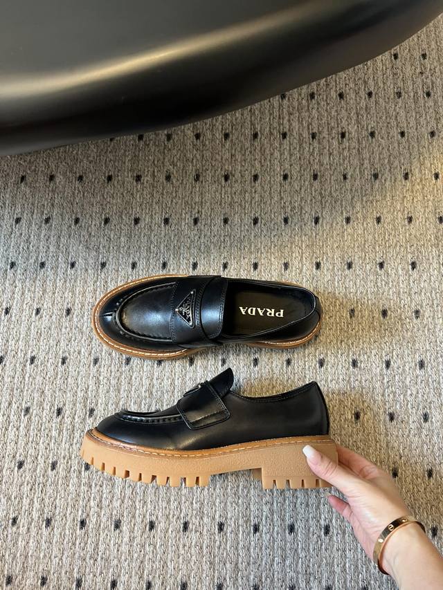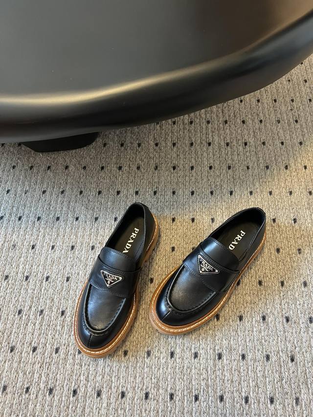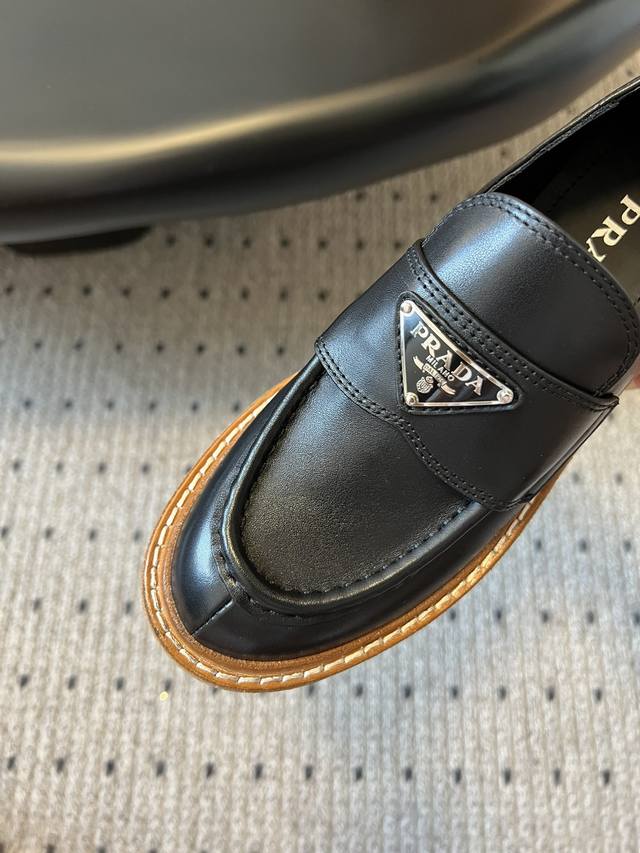 prad* 普拉达厚底复古牛牛筋底三角标乐福鞋