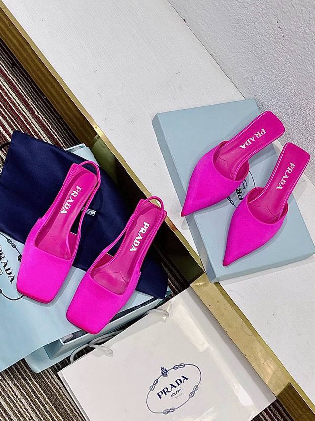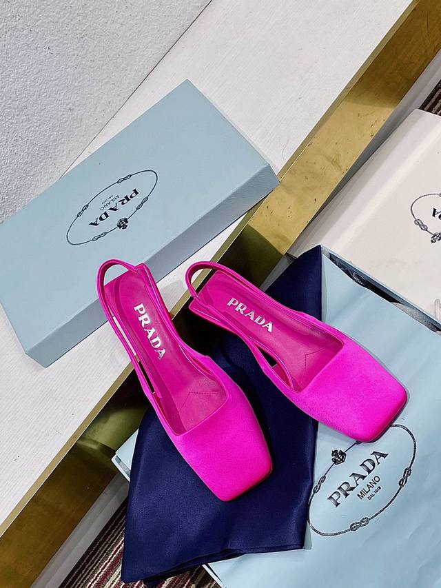 Prada普拉达 春夏新款绝美真丝方头,尖头跟鞋!春夏主场秀款!
