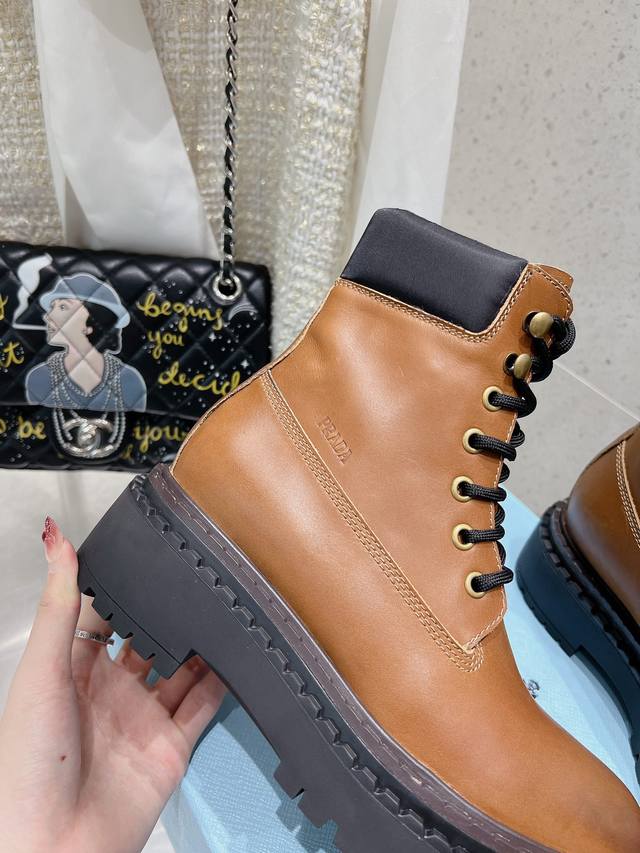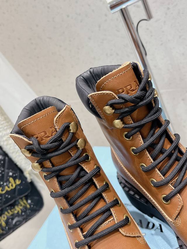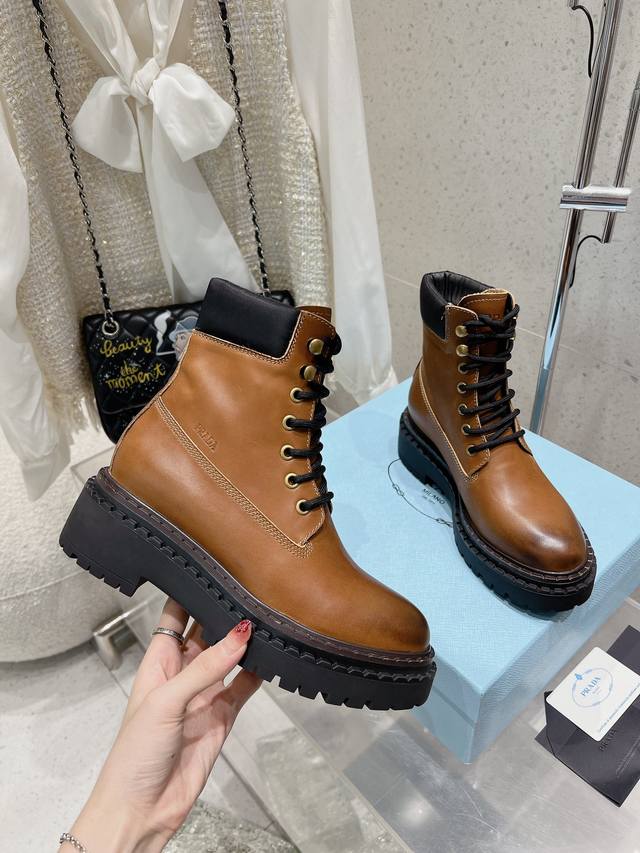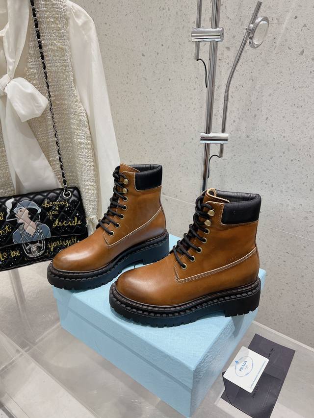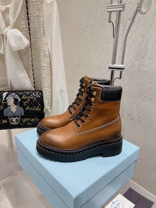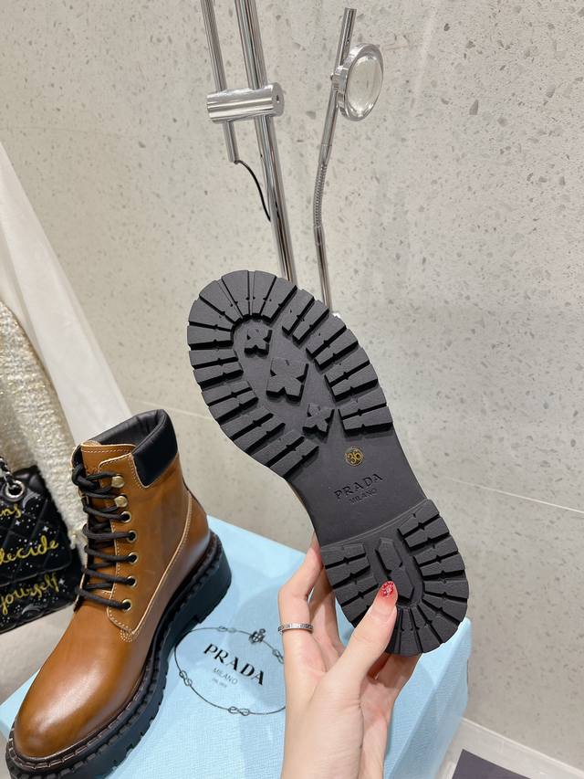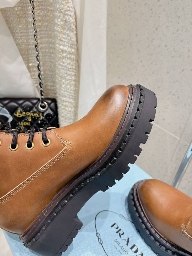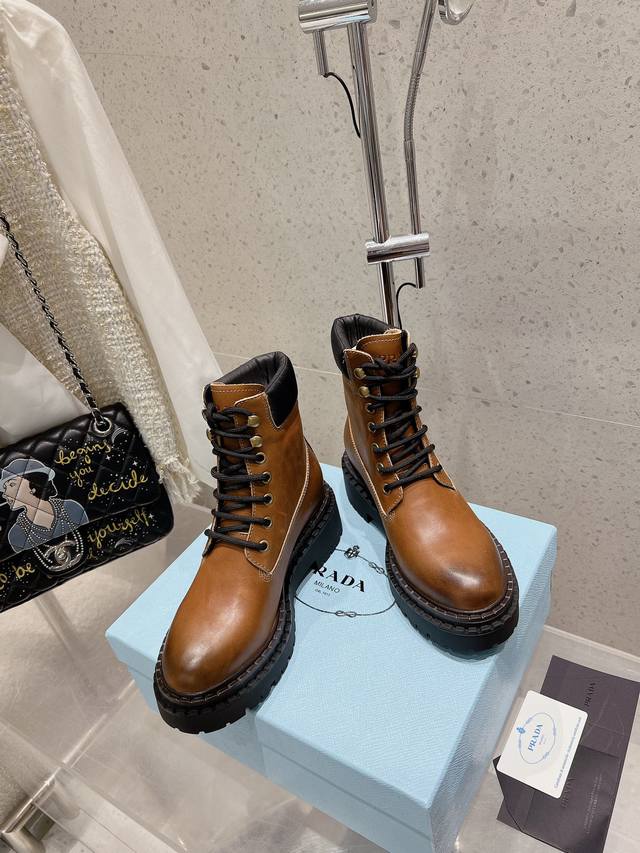 prada普拉达 24 最新 厚底复古擦色马丁短靴
