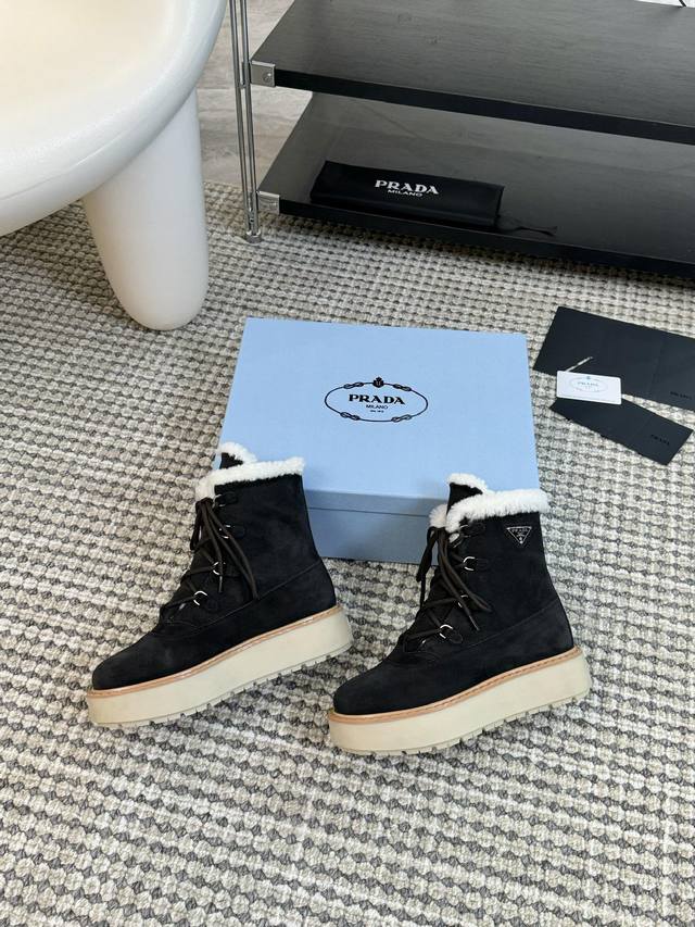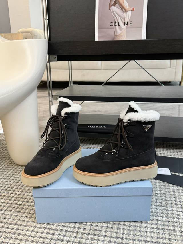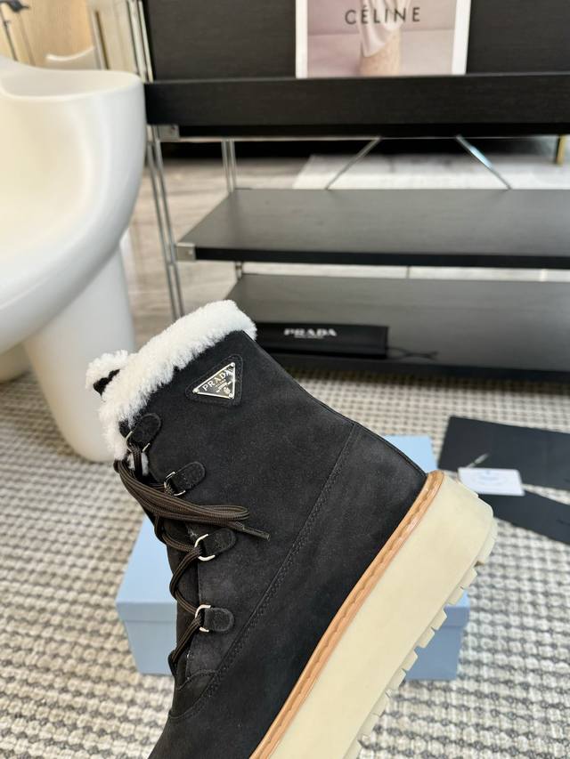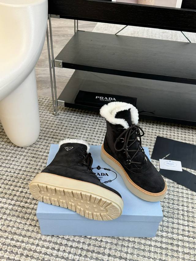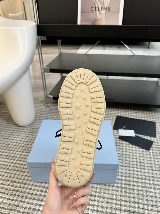Prada普拉达 24Ss 厚底 休闲 羊毛短靴 这款运动鞋延续经久不衰的轮廓,是新款经典单品