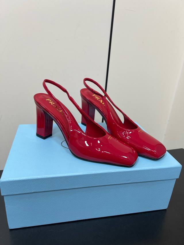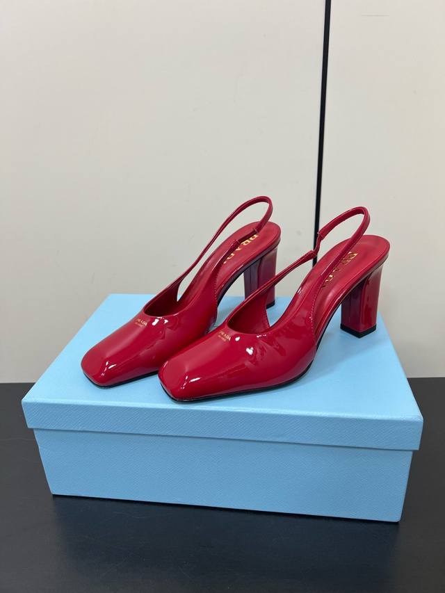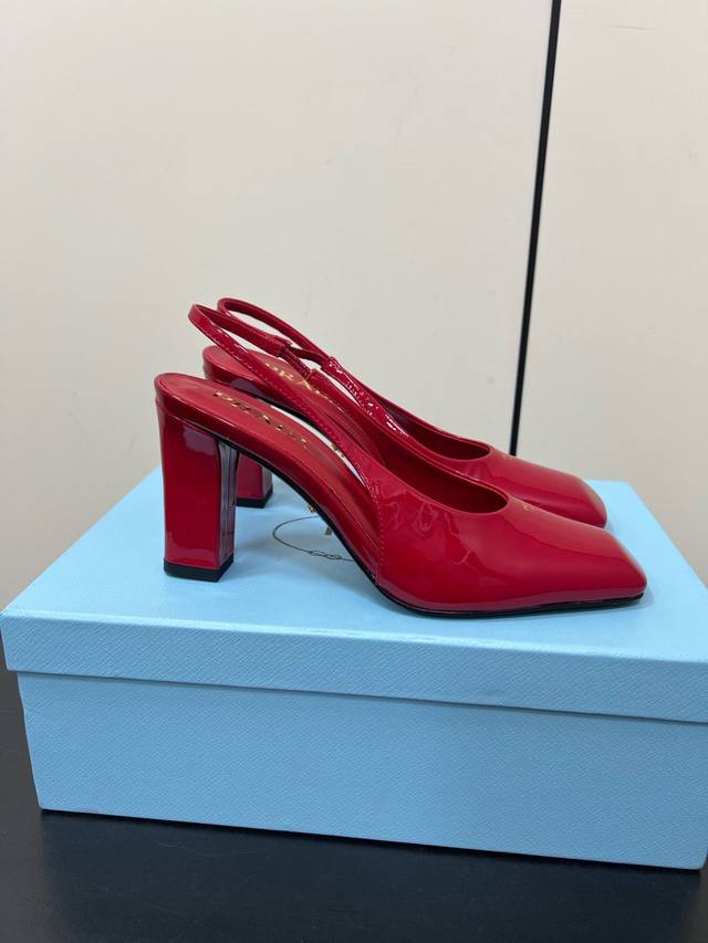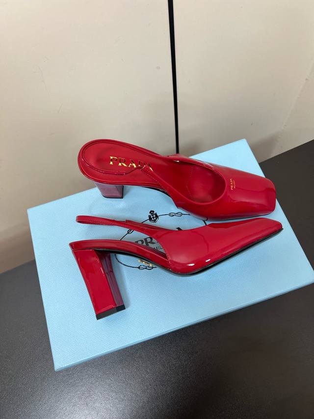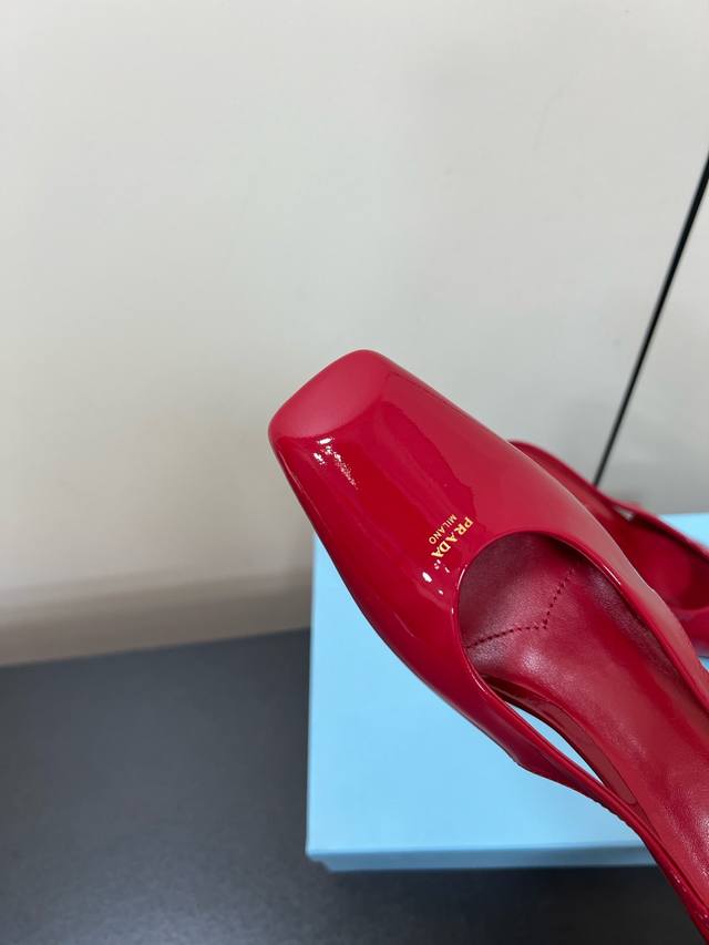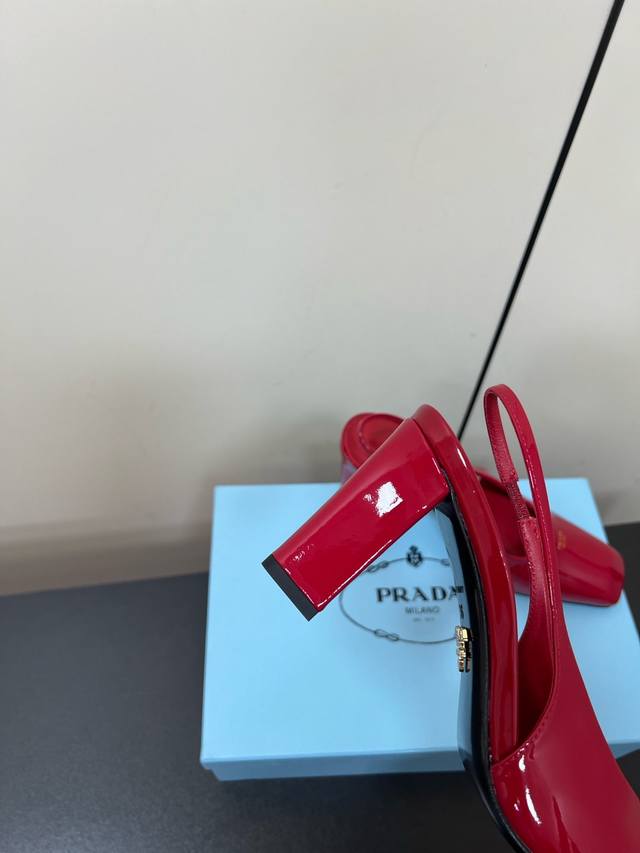 这款高跟鞋使用优雅,将简约的造型与漆面皮革的精致风范巧妙融合 丝网印花字母徽标提升摩登设计的格调