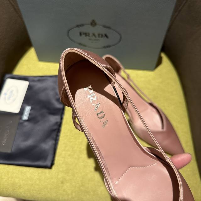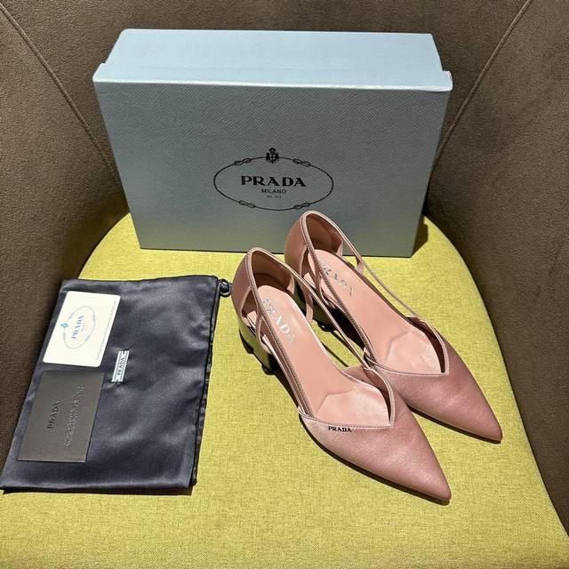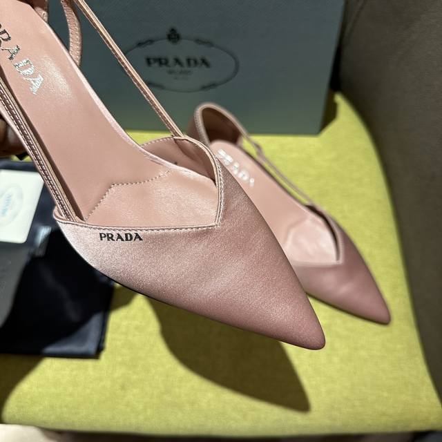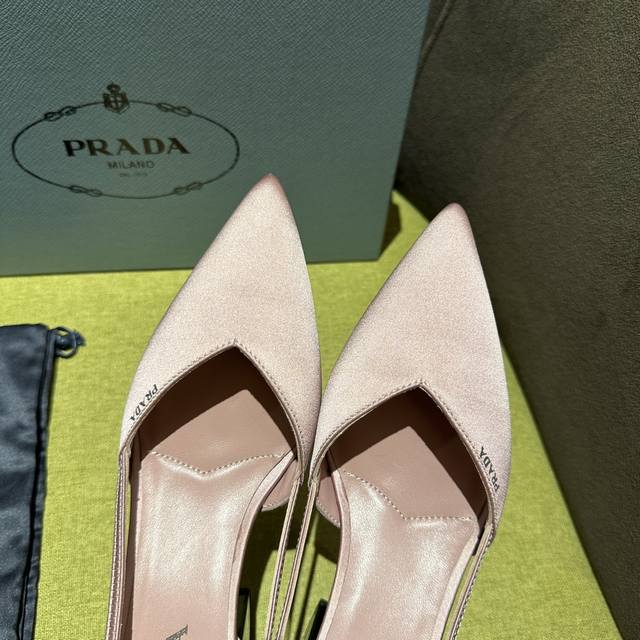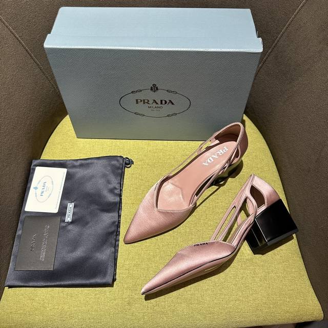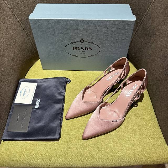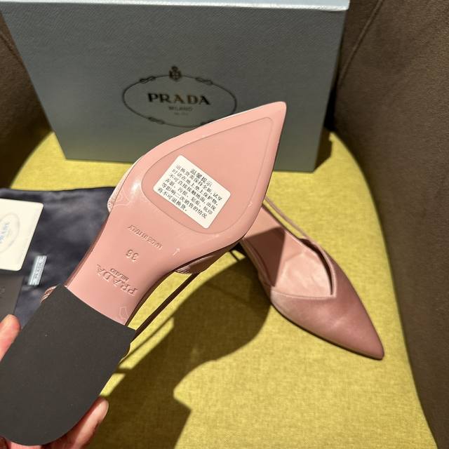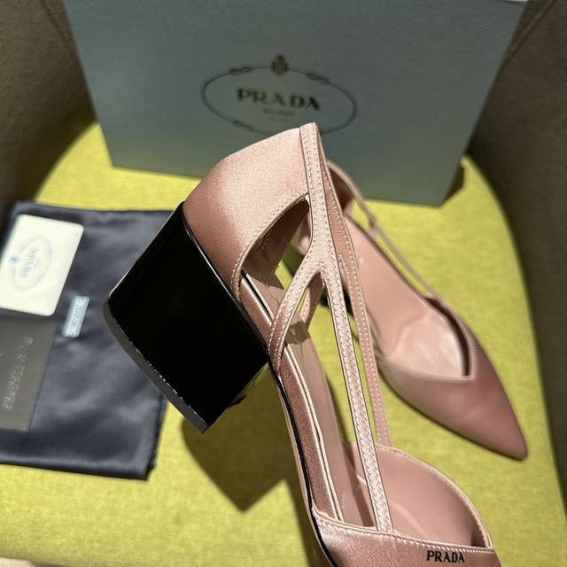prada普拉达 Fw24走秀款 这款缎面高跟鞋融合昔日优雅风格与当代经典元素,以锥形线条与现代主义细节重新演绎 0年代廓形。